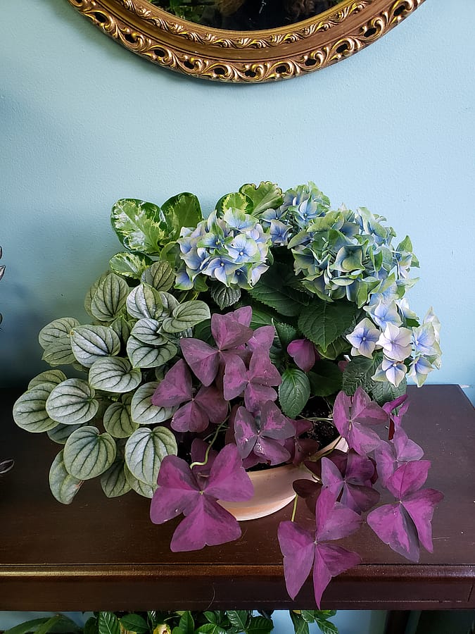 Give the gift that keeps on living! A ceramic or terracotta container planted with an assortment of living green and blooming house plantsĀ and finished with Spanish moss or decorative bark. *Plant selections vary and are Designer's Choice