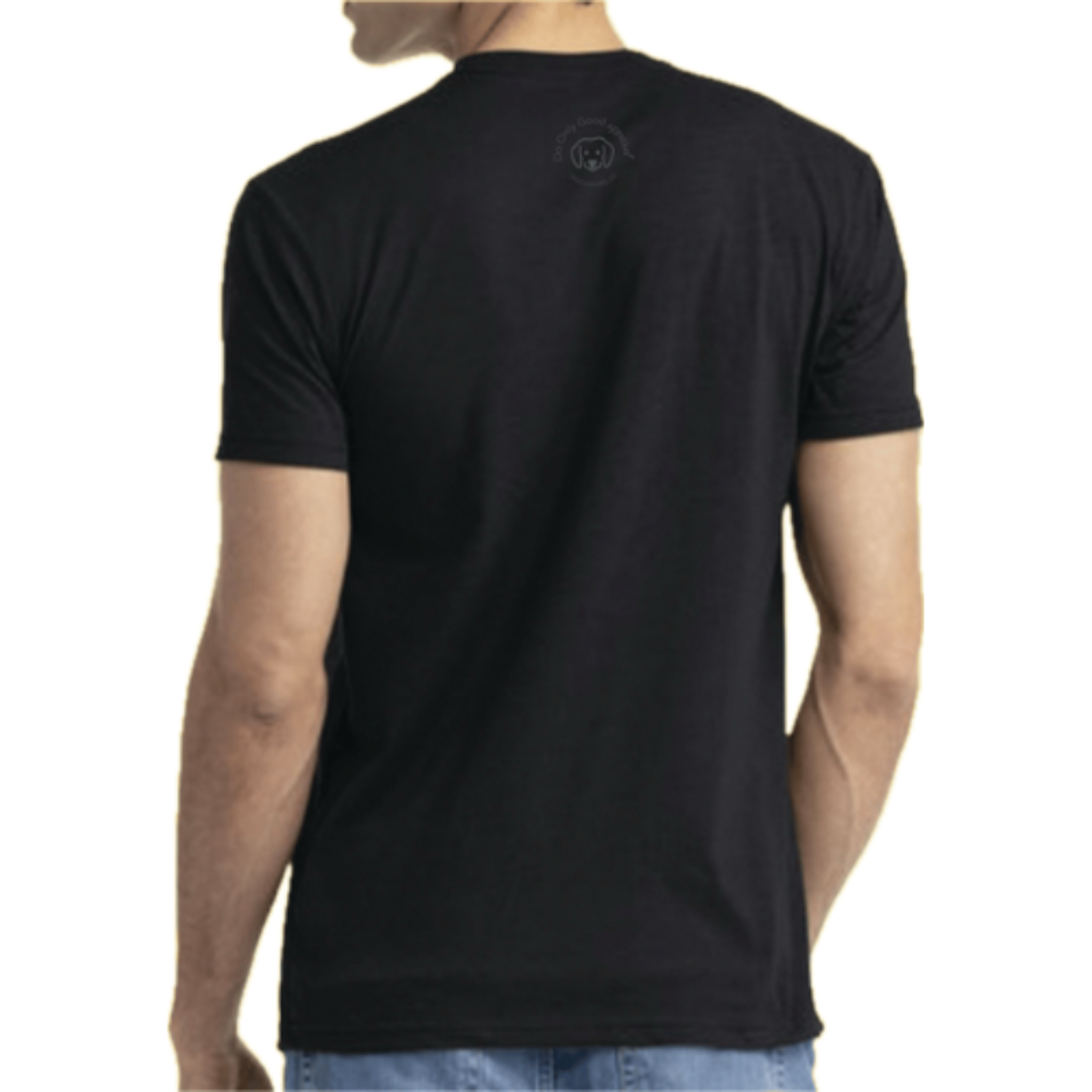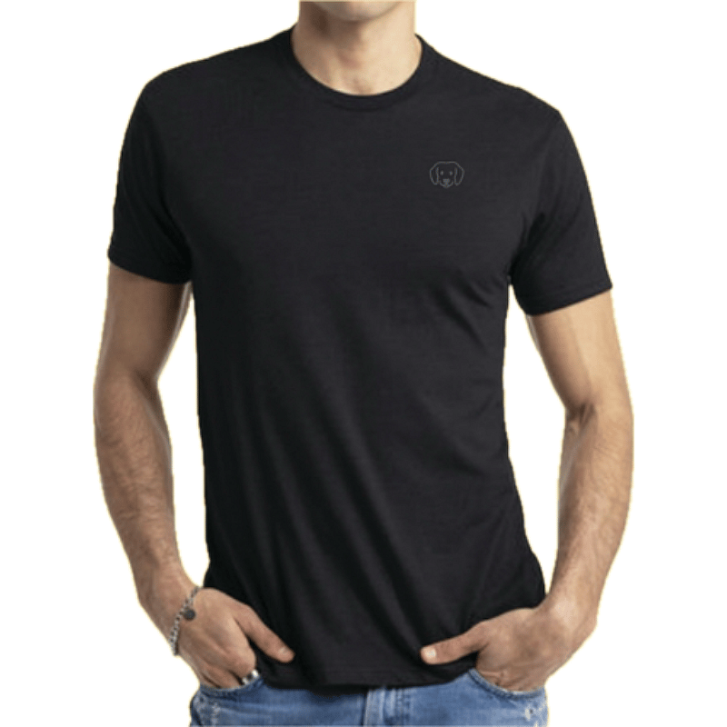Stay under the radar with this sleek dark grey-on-black tee. Subtly spread the message of kindness with a 1" wide DO ONLY GOOD dog on the left chest and a 2.5" wide logo near the collar on the back. Fabric: 60% Combed Ring-Spun Cotton, 40% Polyester