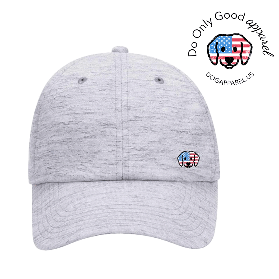 Keep cool and shady with this super lightweight, 6-panel, low-profile, heather gray/USA dog baseball cap. It fits most adults with an adjustable velcro strap in the back.