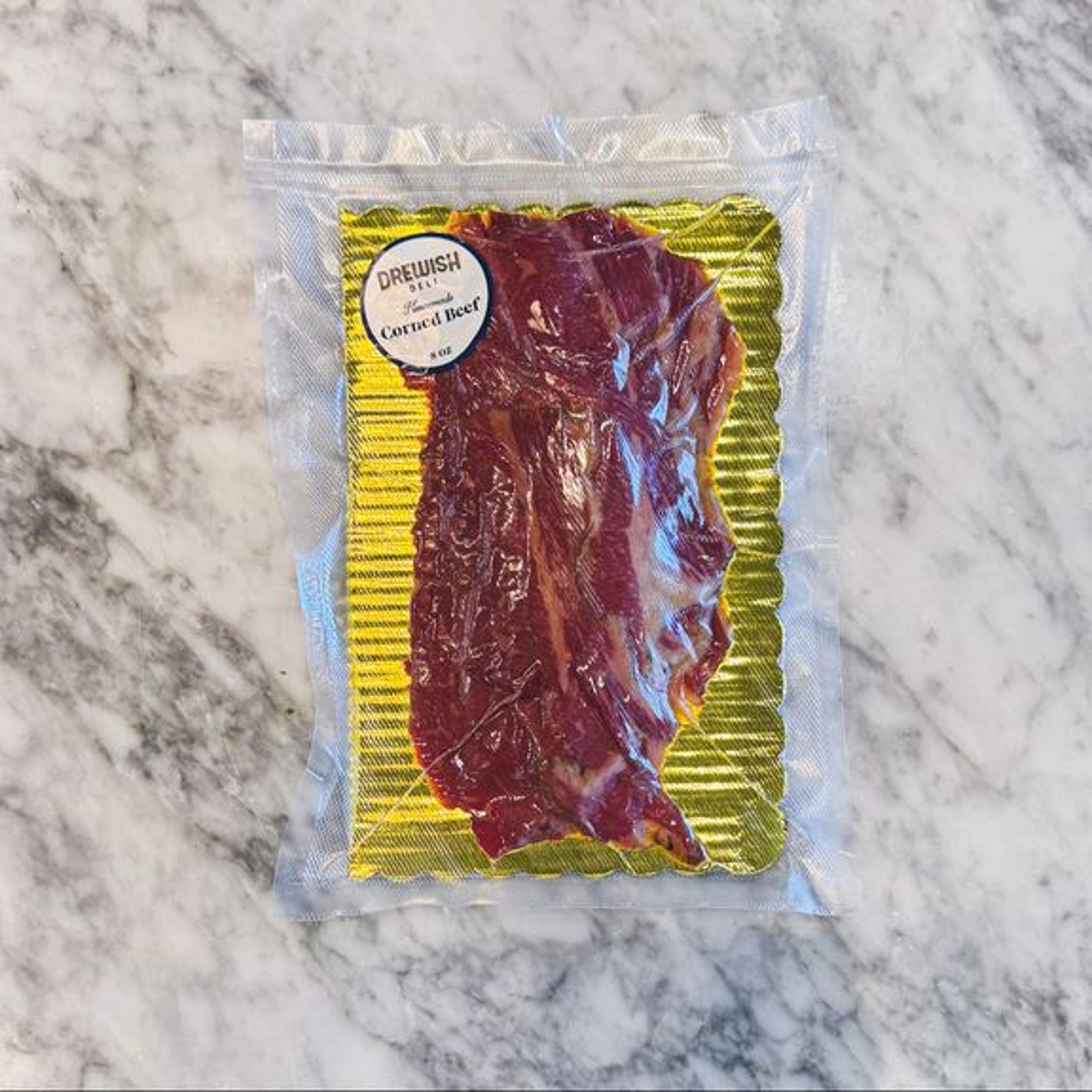 House made corned beef sliced thin and packaged to go