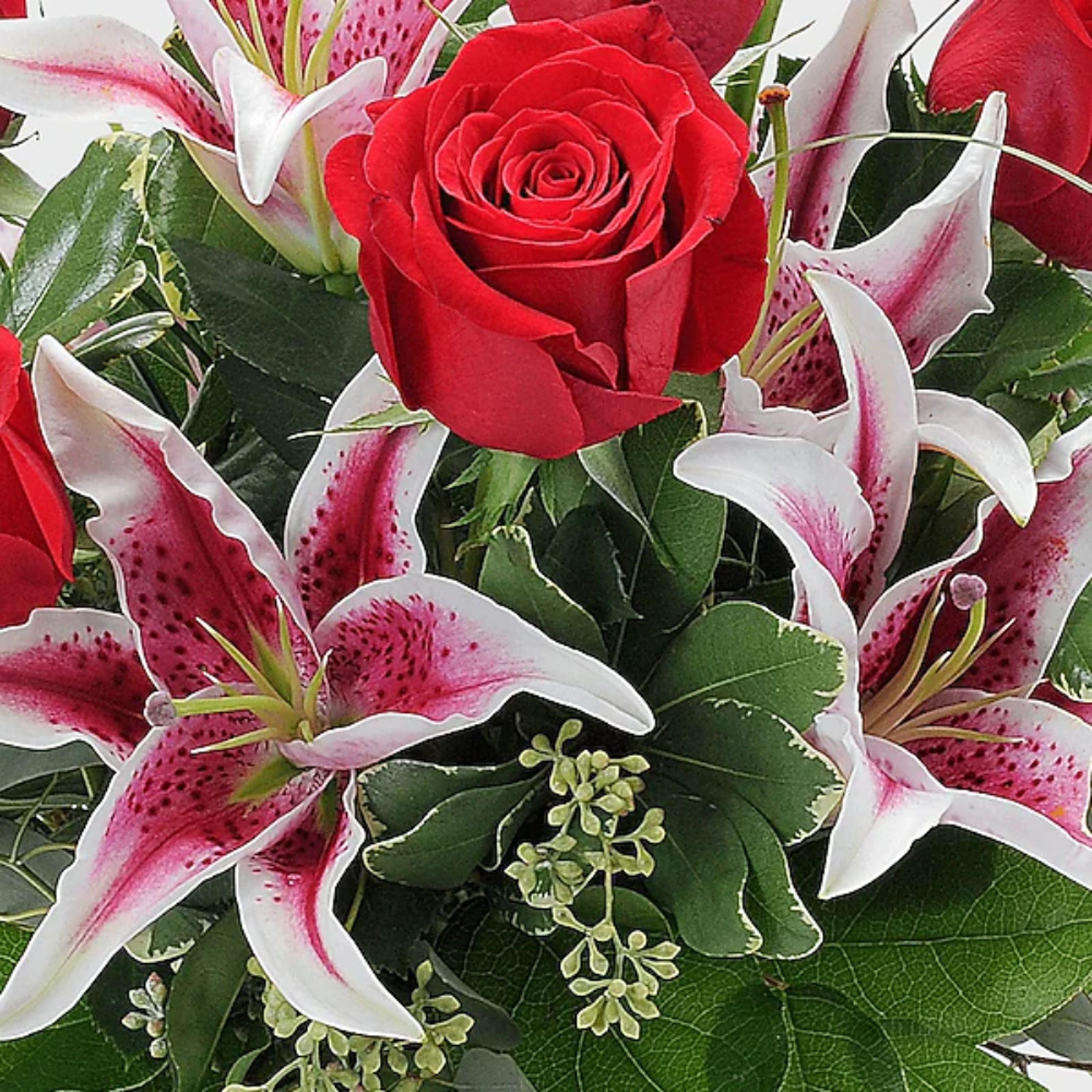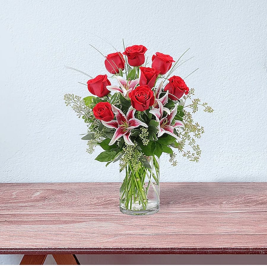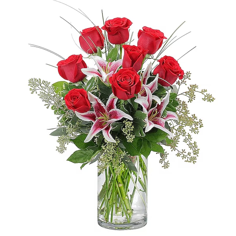 You may seem crazy, but it's love! Red roses and stargazer lilies will show them it's for real. #vday26 *Approximately 10"W X 17"H