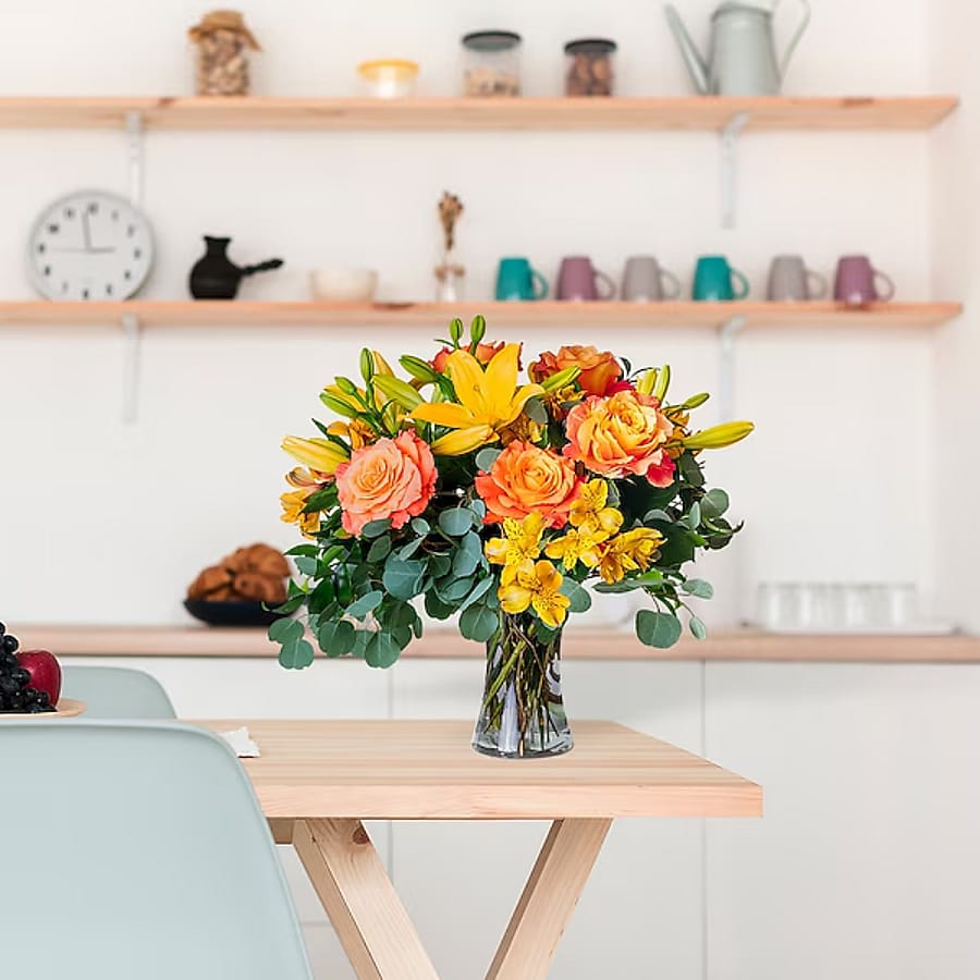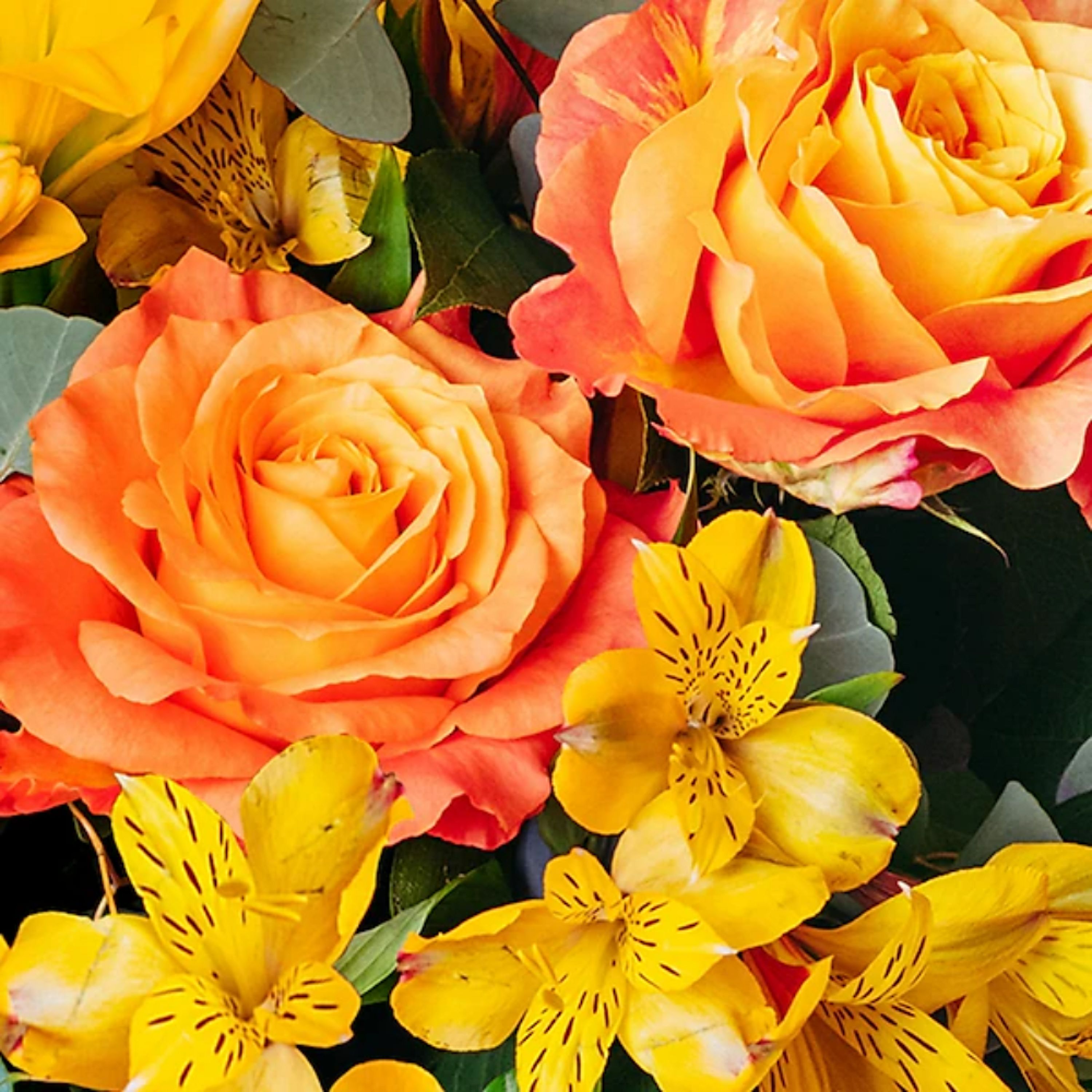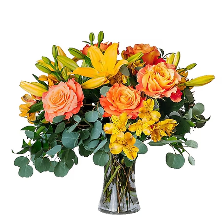 Make them what to dance footloose and "Fancy Free". Free Spirit roses and yellow lilies are bright and fun. *Approximately 25"W X 22"H