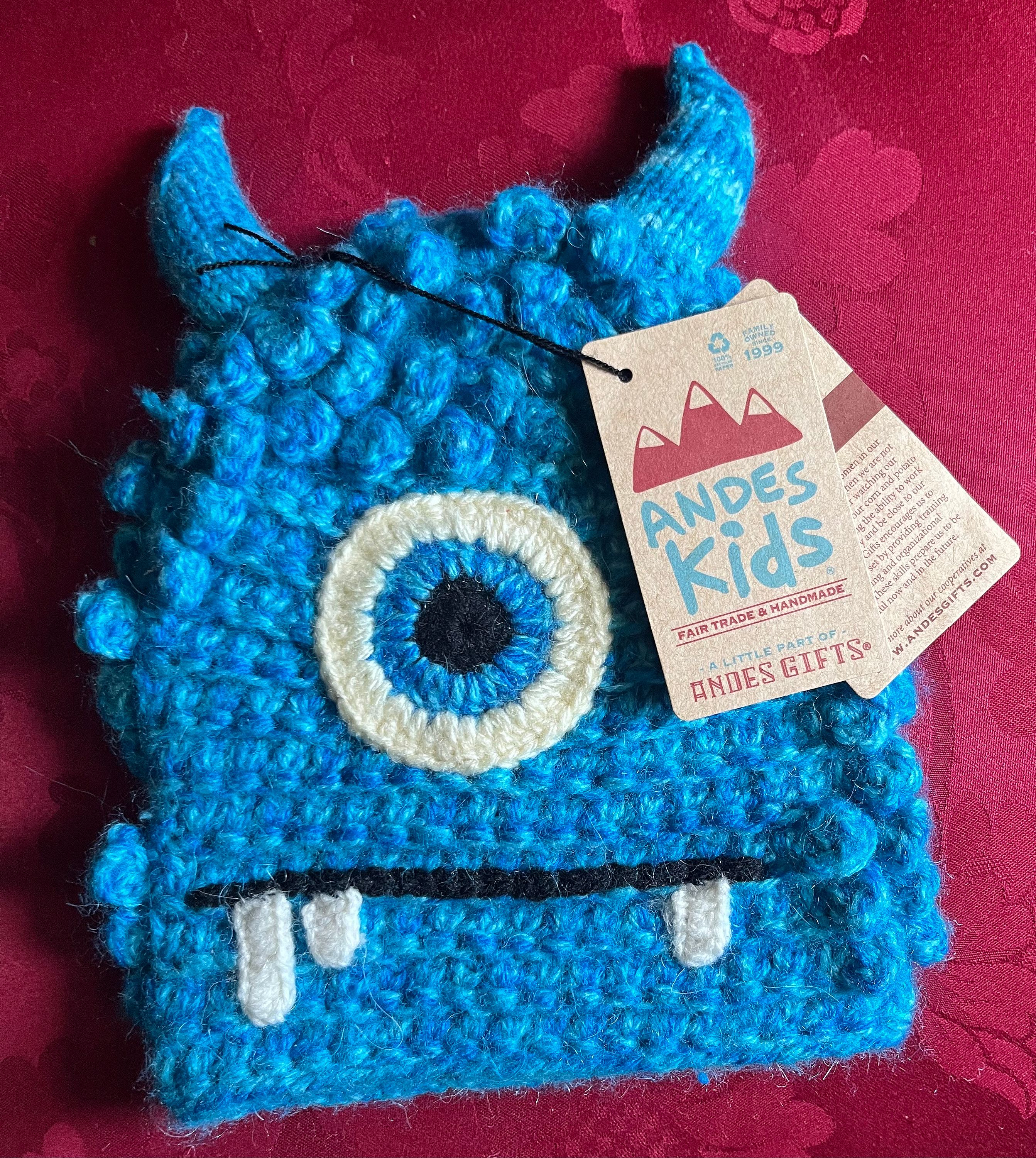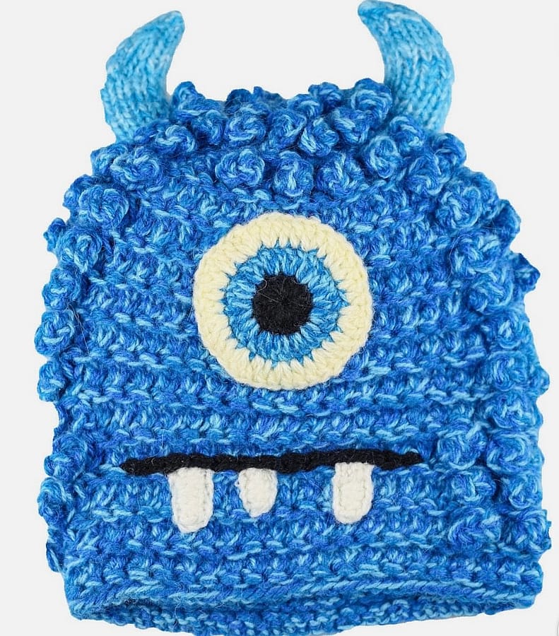 Warm, handcrafted, Fair Trade kids monster hats. Not too scary, just plain cute! Horns, a single eye and three teeth make this hat fun and adorable. High quality craftsmanship is the first thing you notice, then the soft texture.