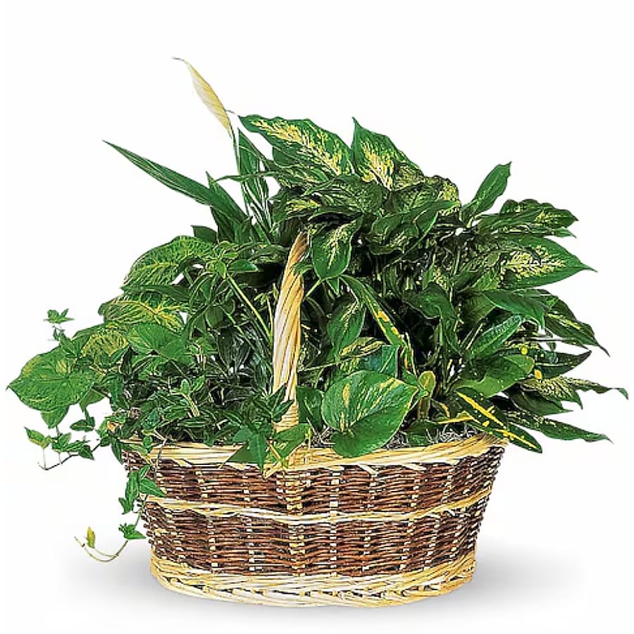 This impressive garden of indoor plants will be a warm welcome to any home or office. And you'll get glowing reviews for sending it. Croton, ivy, pothos, dieffenbachia, schefflera and syngonium plants arrive together in a wicker basket with handle.