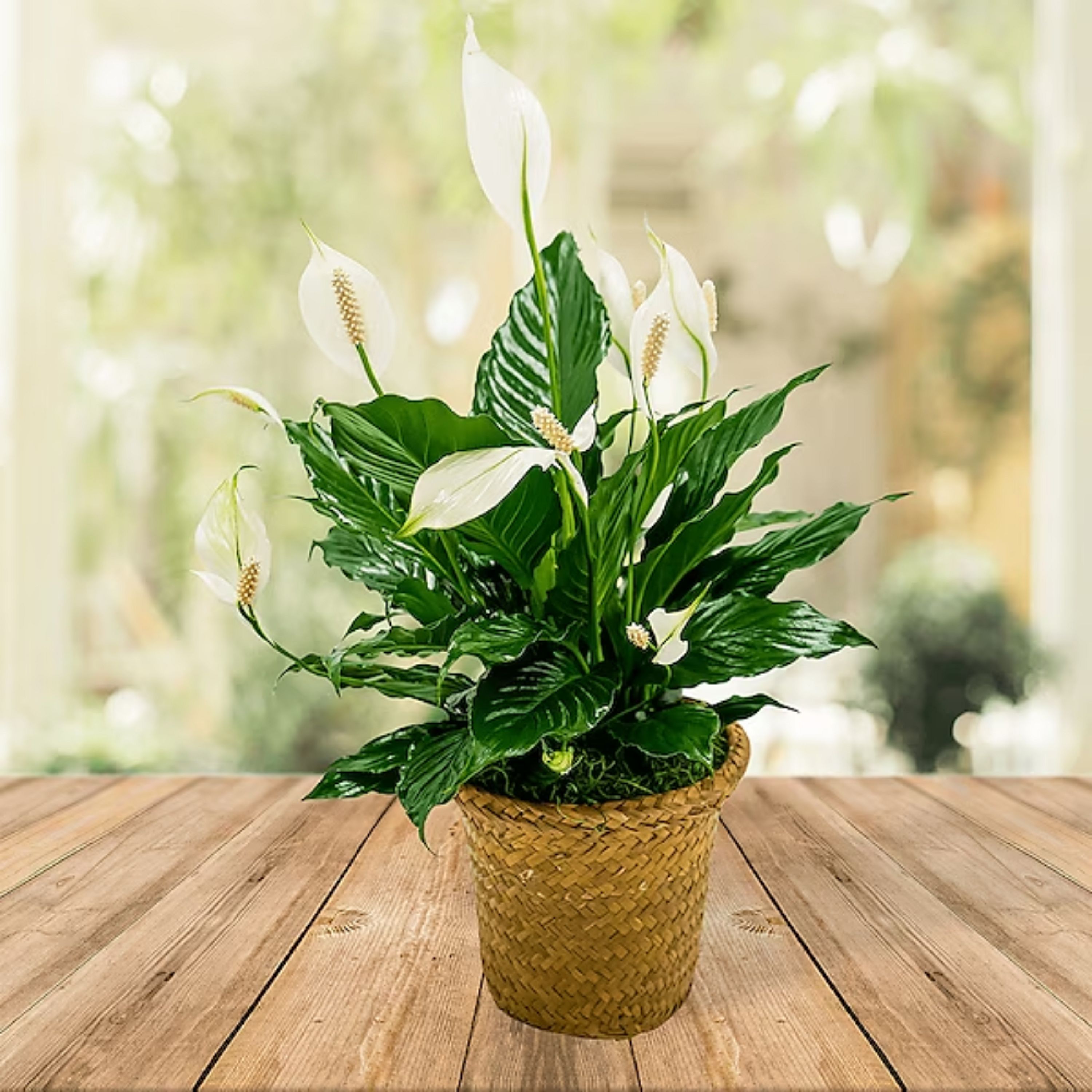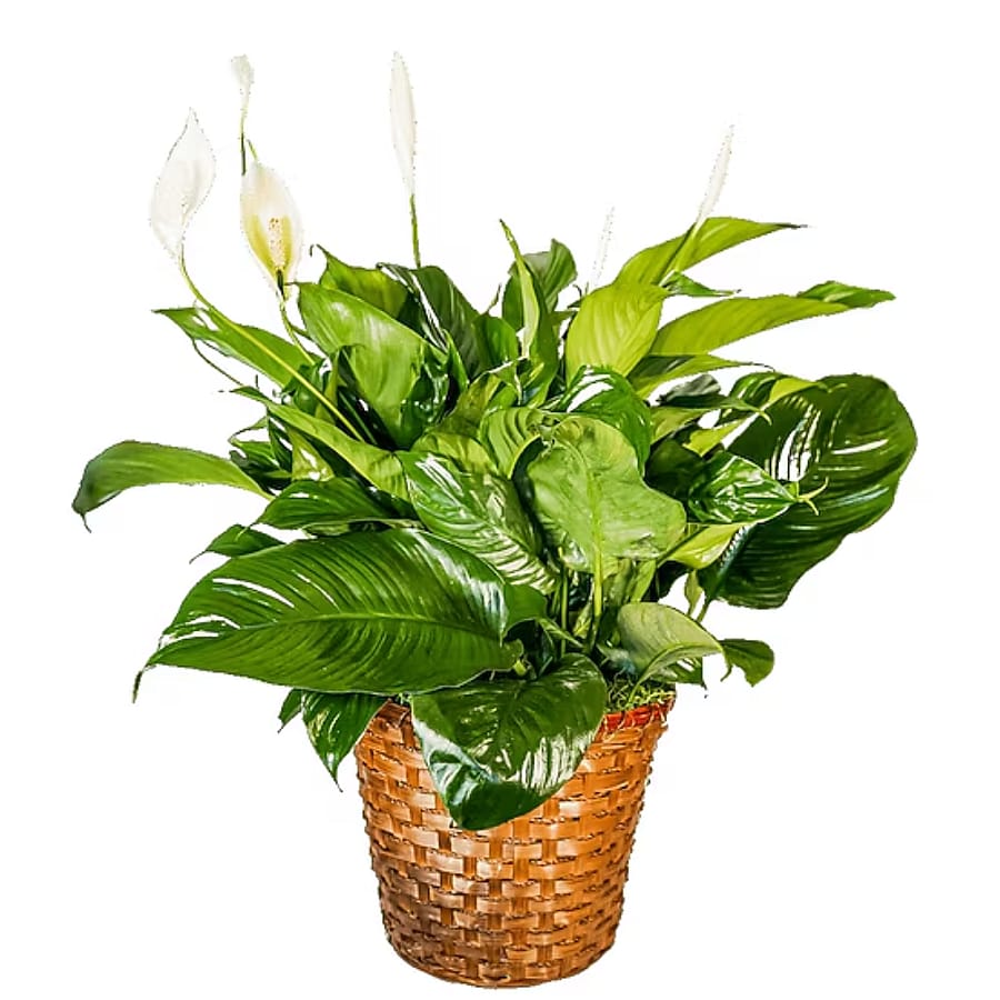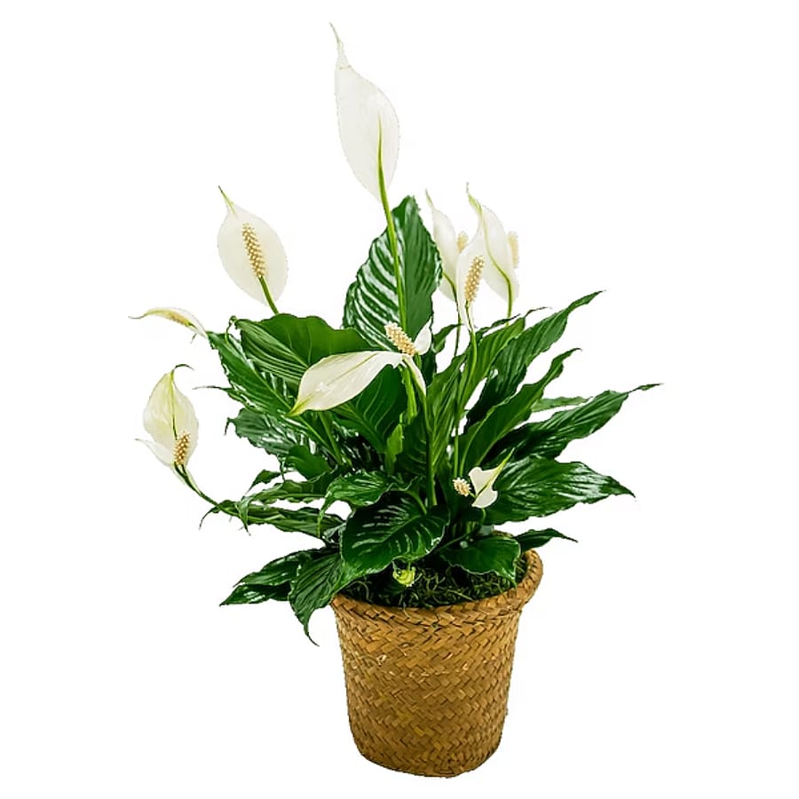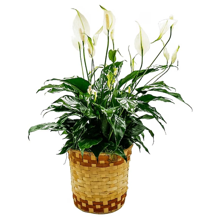 A 6" Peace Lily in a basket. Basket may vary based upon availability.
