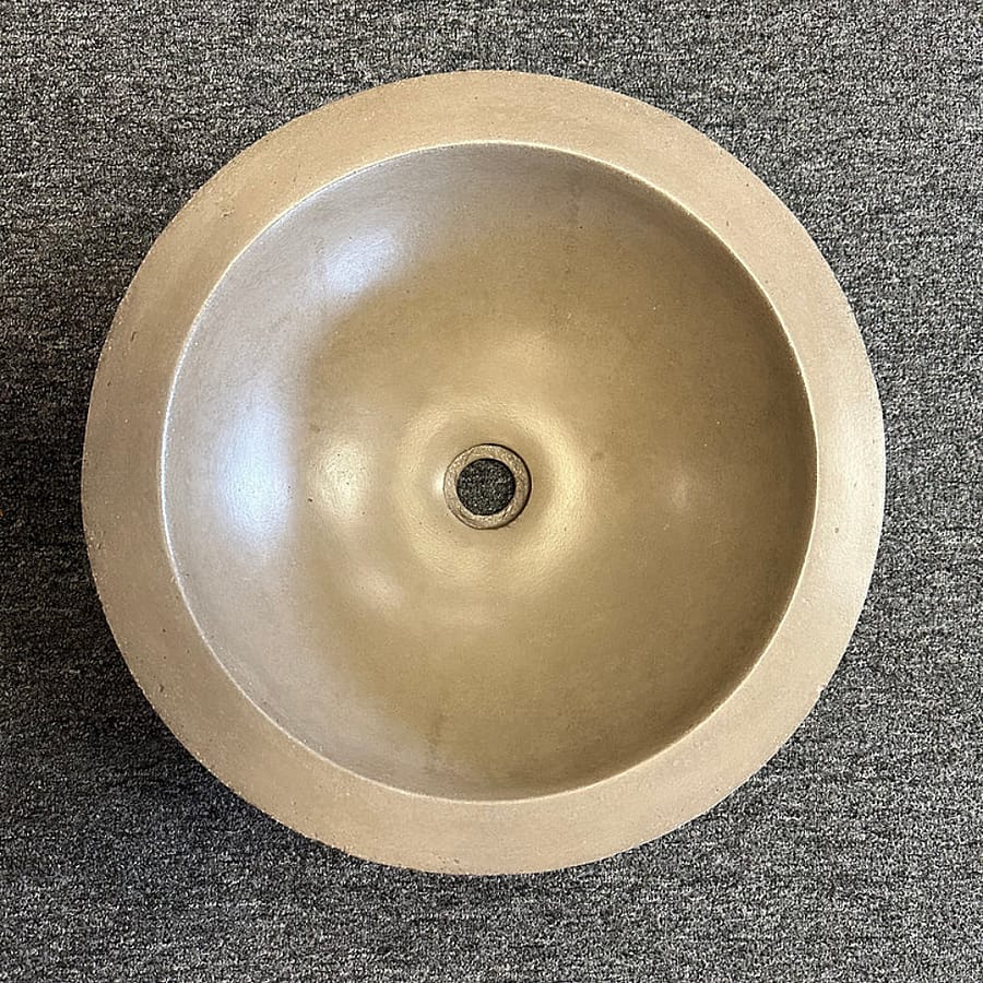 “The perfect half-sphere of this vessel sink makes it a true stand-out for the bath. At 17 inches in diameter, the Morro offers both functionality and effortless style. This one-of-a-kind sink is artisan-crafted of NativeStone: an innovative blend of cement and natural jute fiber.” -Native Trails
