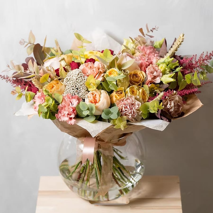 Bold, textural, and full of natural charm, the Live on the Wild Side arrangement celebrates organic beauty in every bloom. Featuring a lush mix of garden roses, spray roses, classic roses, astilbe, lisianthus, eucalyptus, wheat, rice flower, poppy pods, and mixed botanicals, this bouquet strikes the perfect balance between elegance and untamed style.