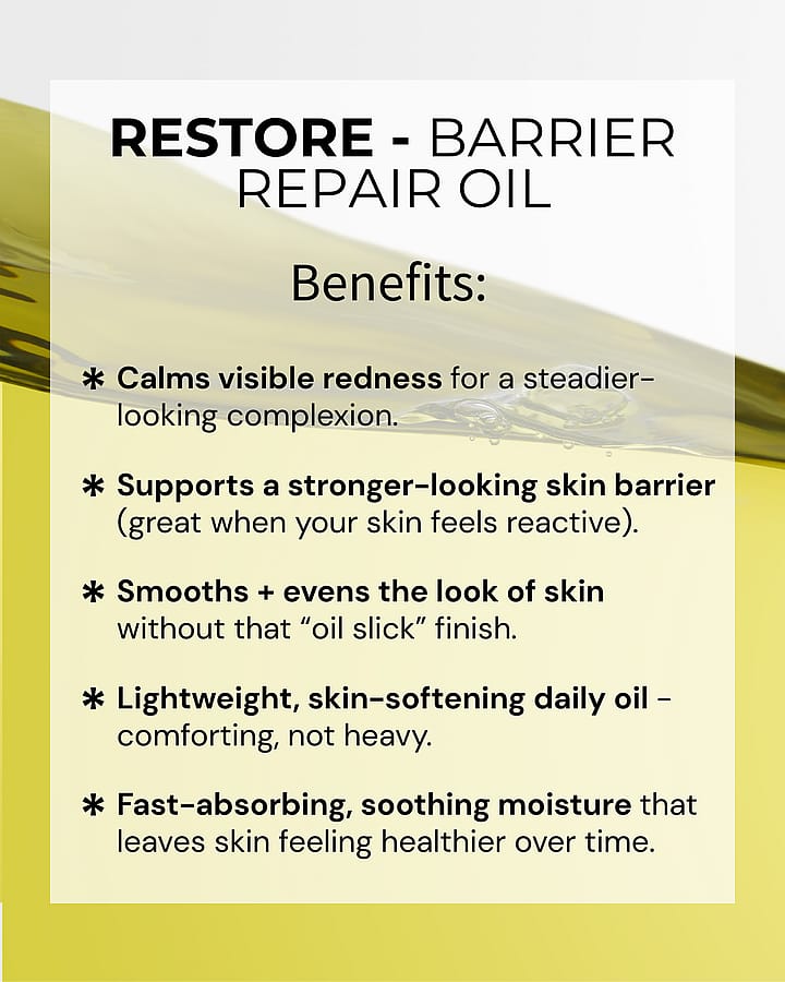 A daily, skin-softening oil that helps calm visible redness, support a stronger-looking barrier, and leave skin looking smoother and more even - without feeling heavy.