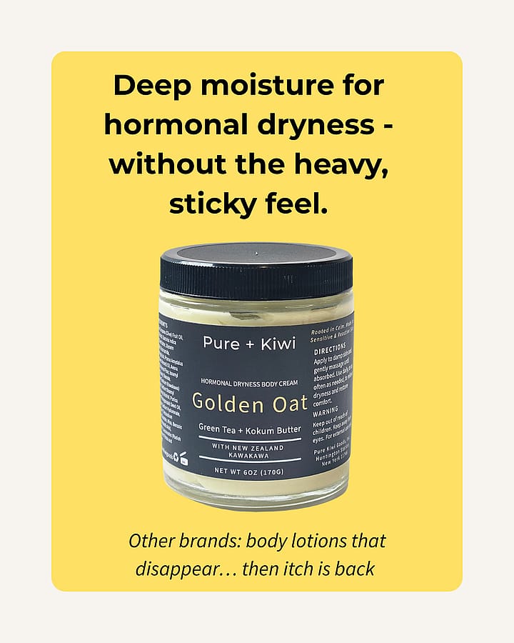 > Best for: Hormonal dryness + flare-prone body skin that needs calm, comfort, and barrier support.