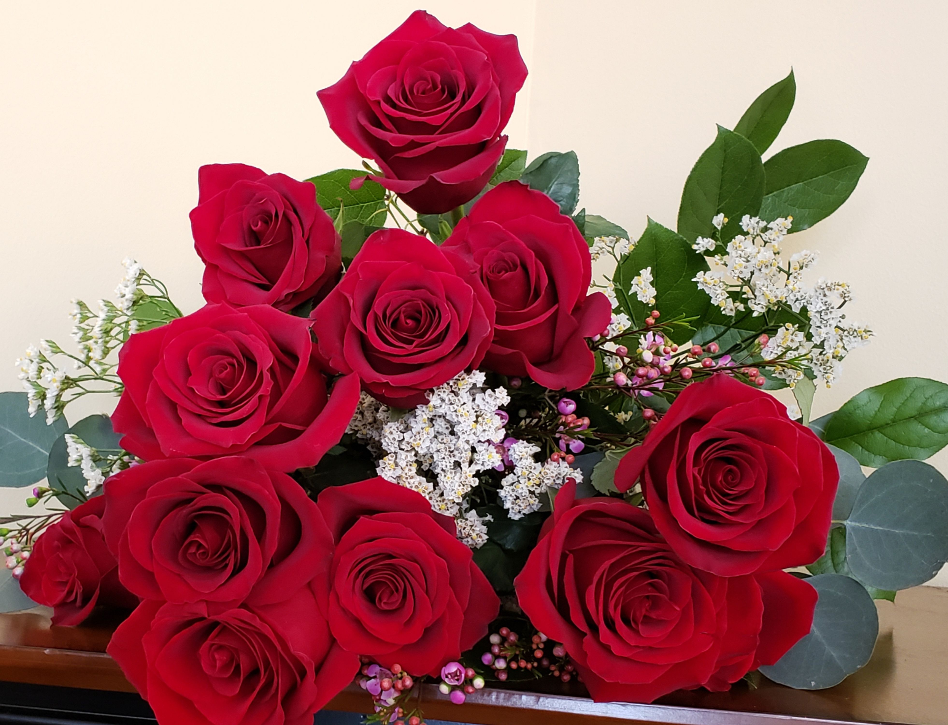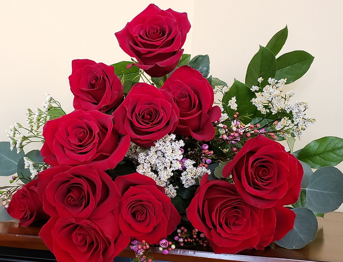 *Product picture is for descriptive purposes only. The actual color shade may vary. Seasonal fillers and greenery will accompany the roses.