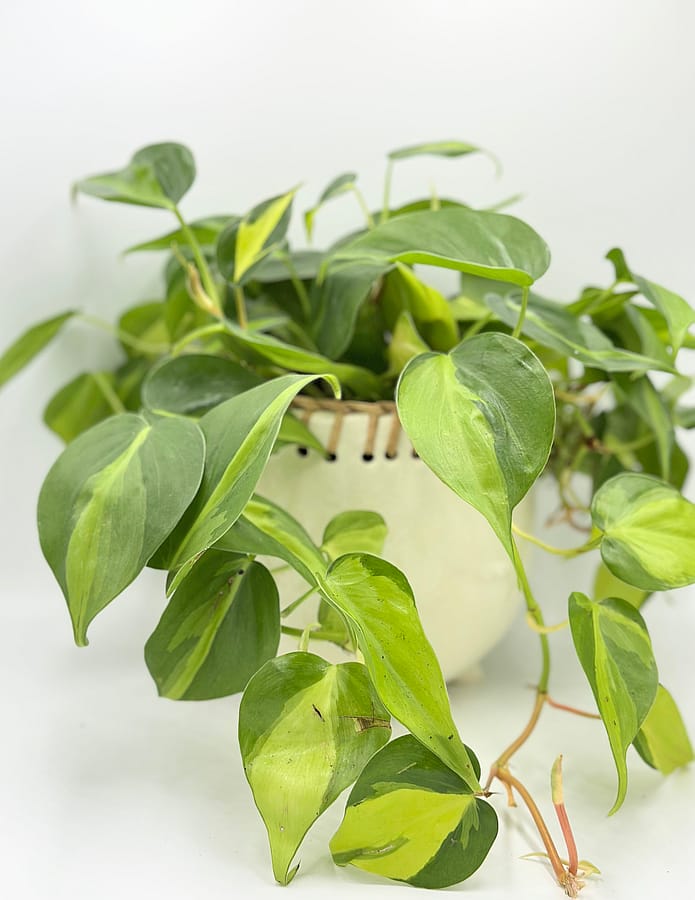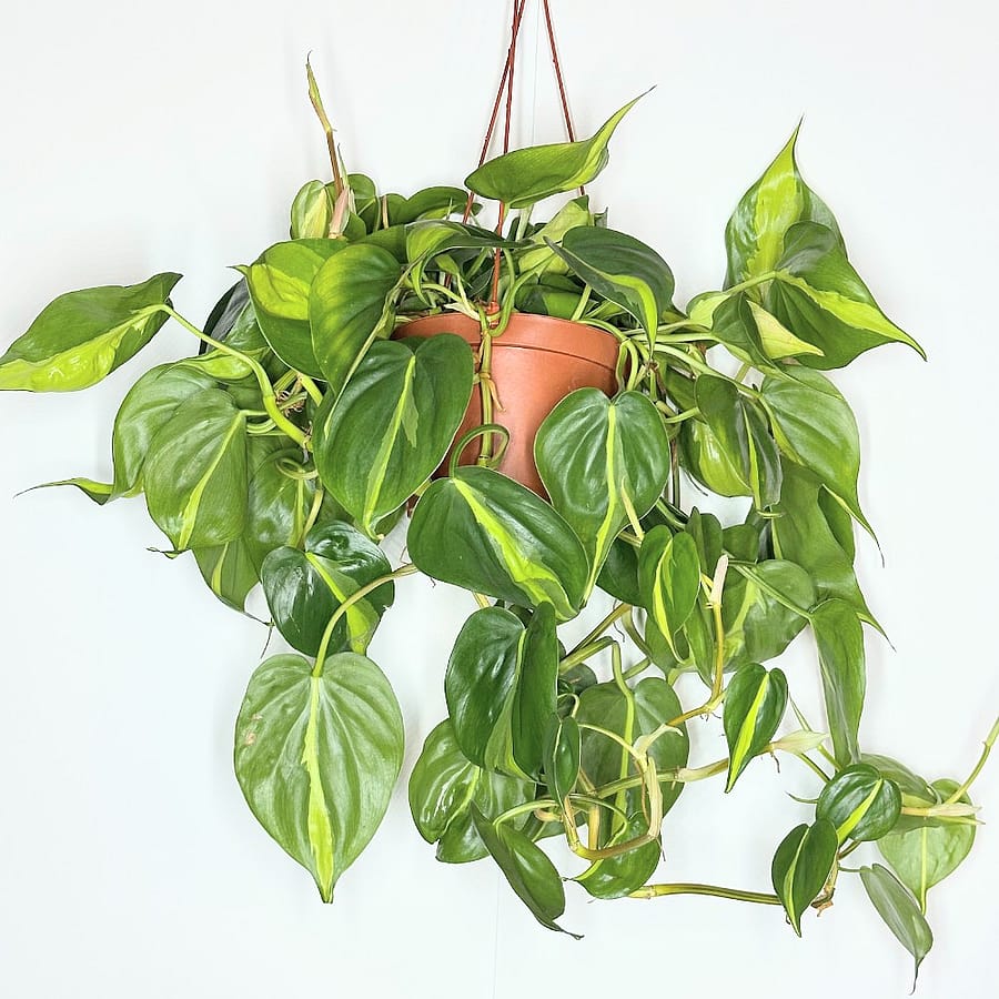 The Philodendron brasil is a crowd favorite. This lush plant is easy to care for and grows long, flowing vines quickly during its growing season (spring & summer). It's a variety of the Philodendron hederaceum, with vibrant yellow-green stripes down the center of each leaf.