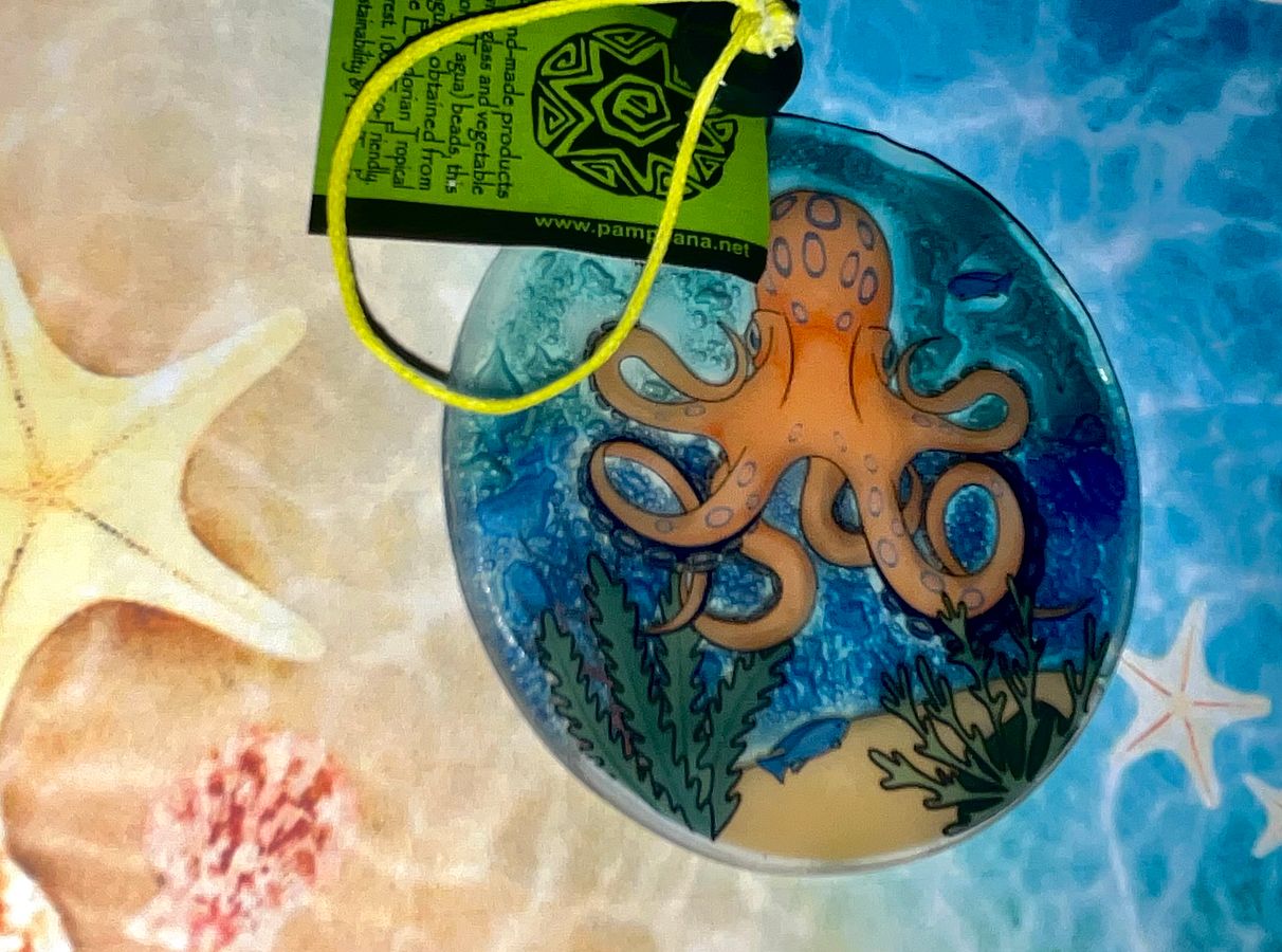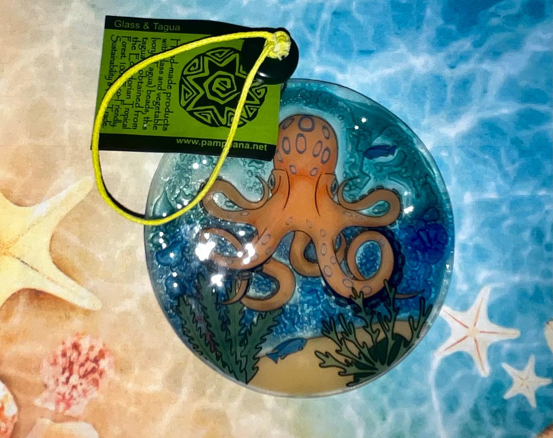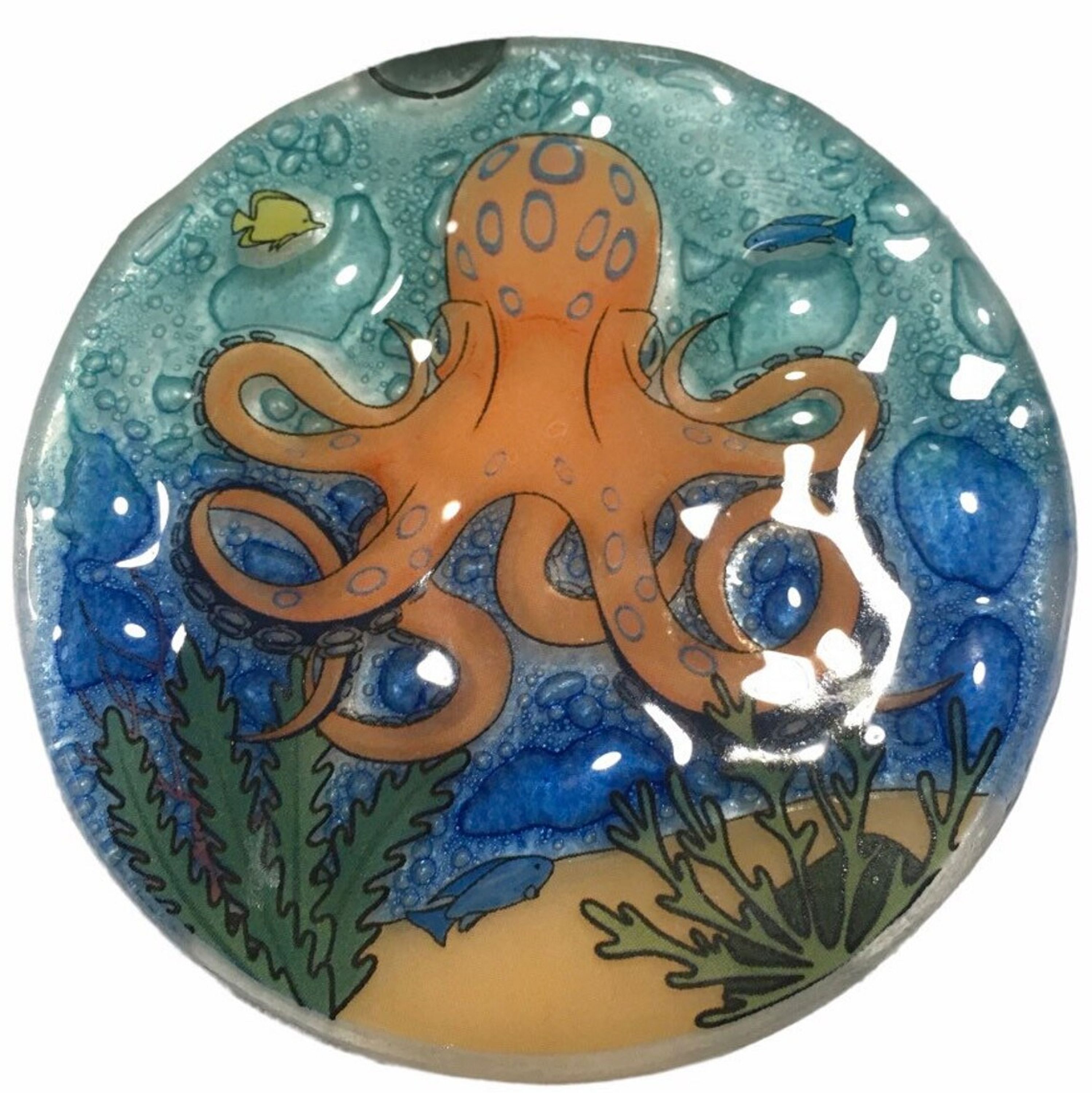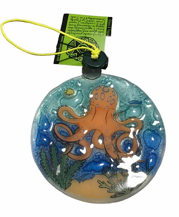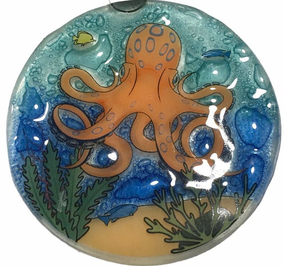 Handmade Fused Glass Disk ornament suncatcher light catcher Octopus Christmas Decor NEW