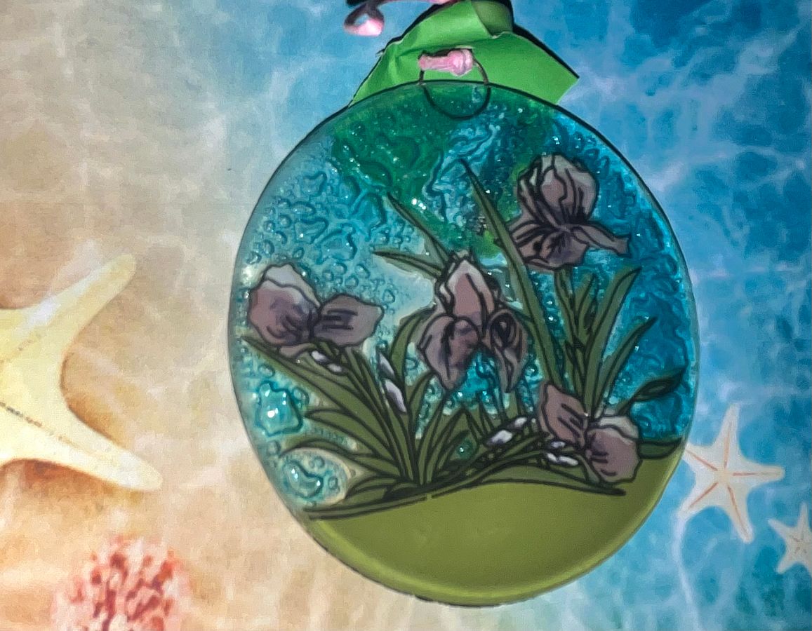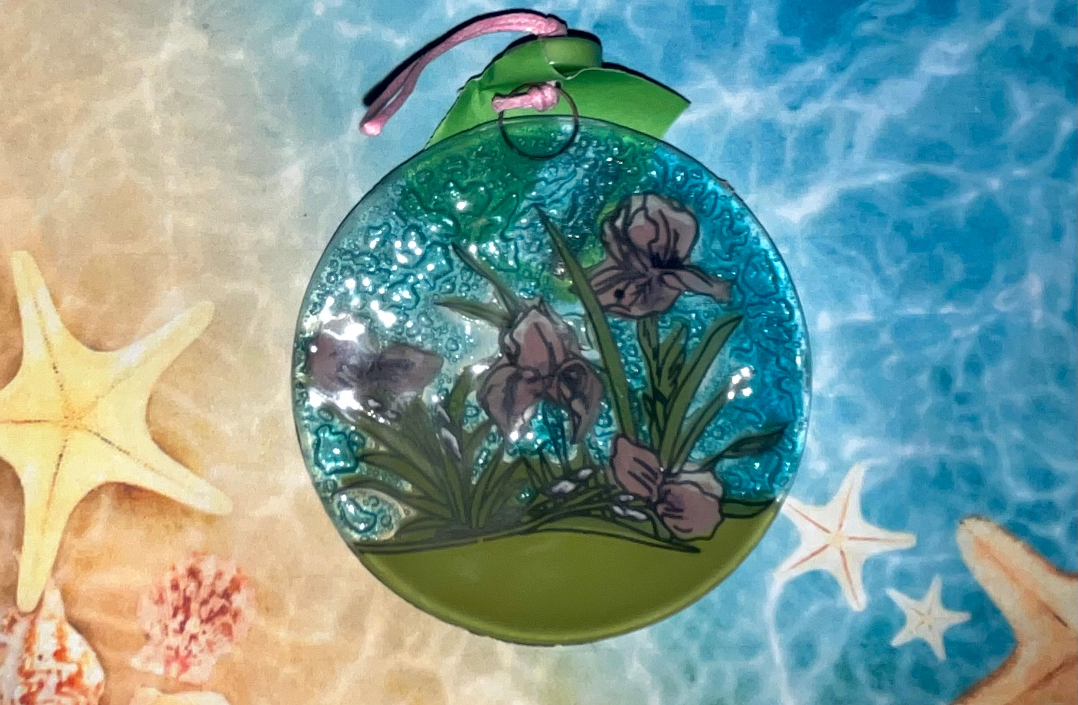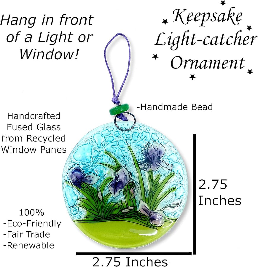 Handmade Fused Glass Disk ornament suncatcher light Iris Flower Suncatcher Christmas tree Decor NEW