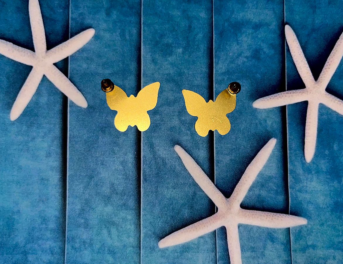 Earrings, 2pcs, Butterfly Stud Gold plated earrings Fashion Accessories Butterfly W-11xL-14mm, Satin, Nickel free NEW