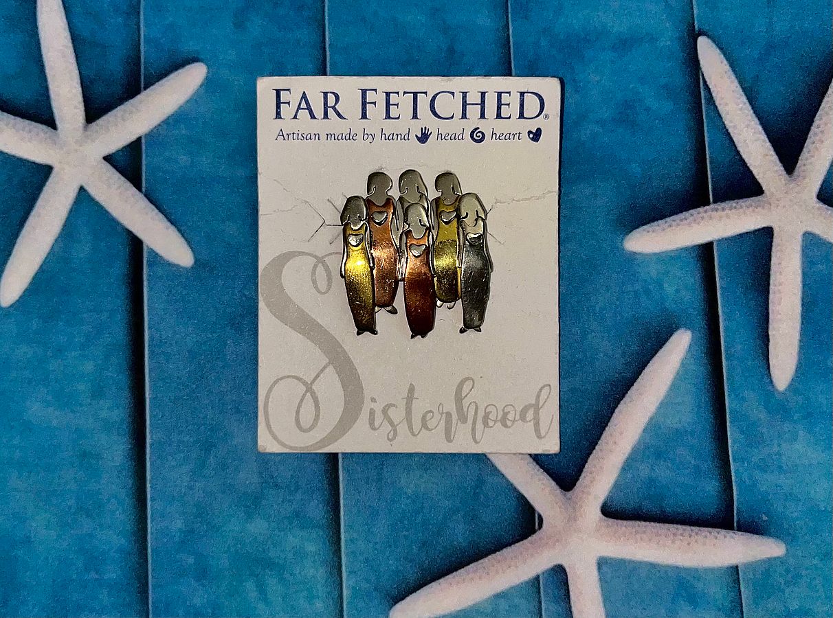 Far Fetched Sisterhood 6 Sisters Pin Copper Brass Hearts Brooch Accessories Family Best Friend Girlfriends NEW