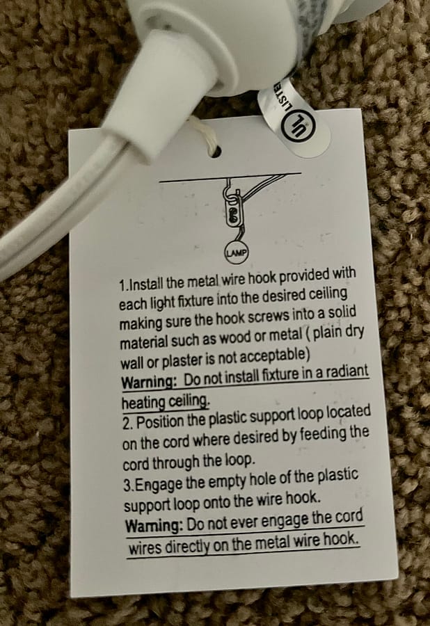 Electrical Swag Cord kit for simple installation of all lights and lanterns into a wall receptacle or for wiring by an electrician into a ceiling outlet. Length: 15 ft Voltage: 100v