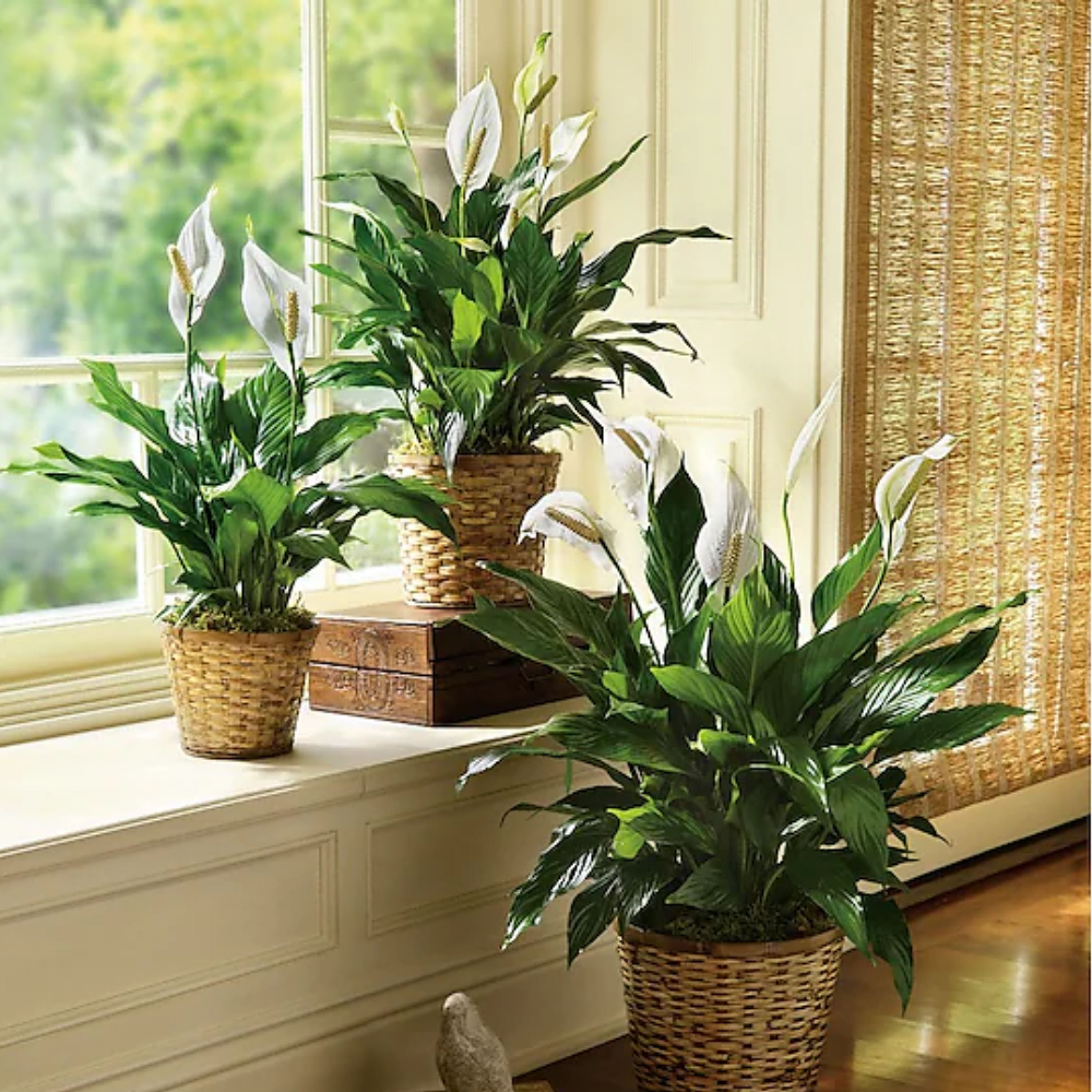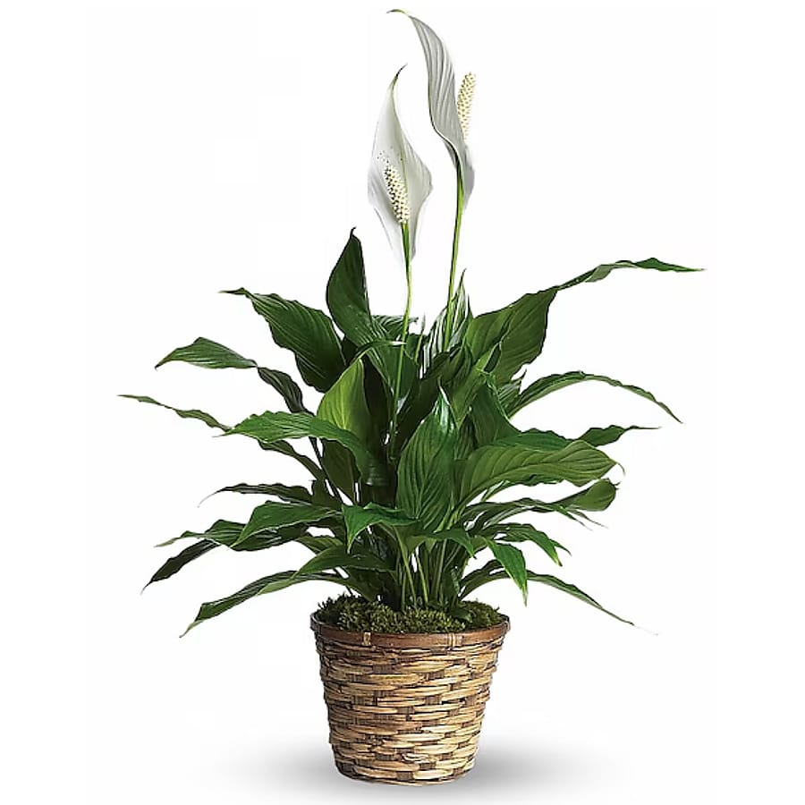 Also known as the peace lily, this dark leafy plant with its delicate white blossoms makes a simply elegant gift. A brilliant green spathiphyllum is delivered in a natural wicker basket. There's nothing small about the sentiment delivered along with this pretty plant.