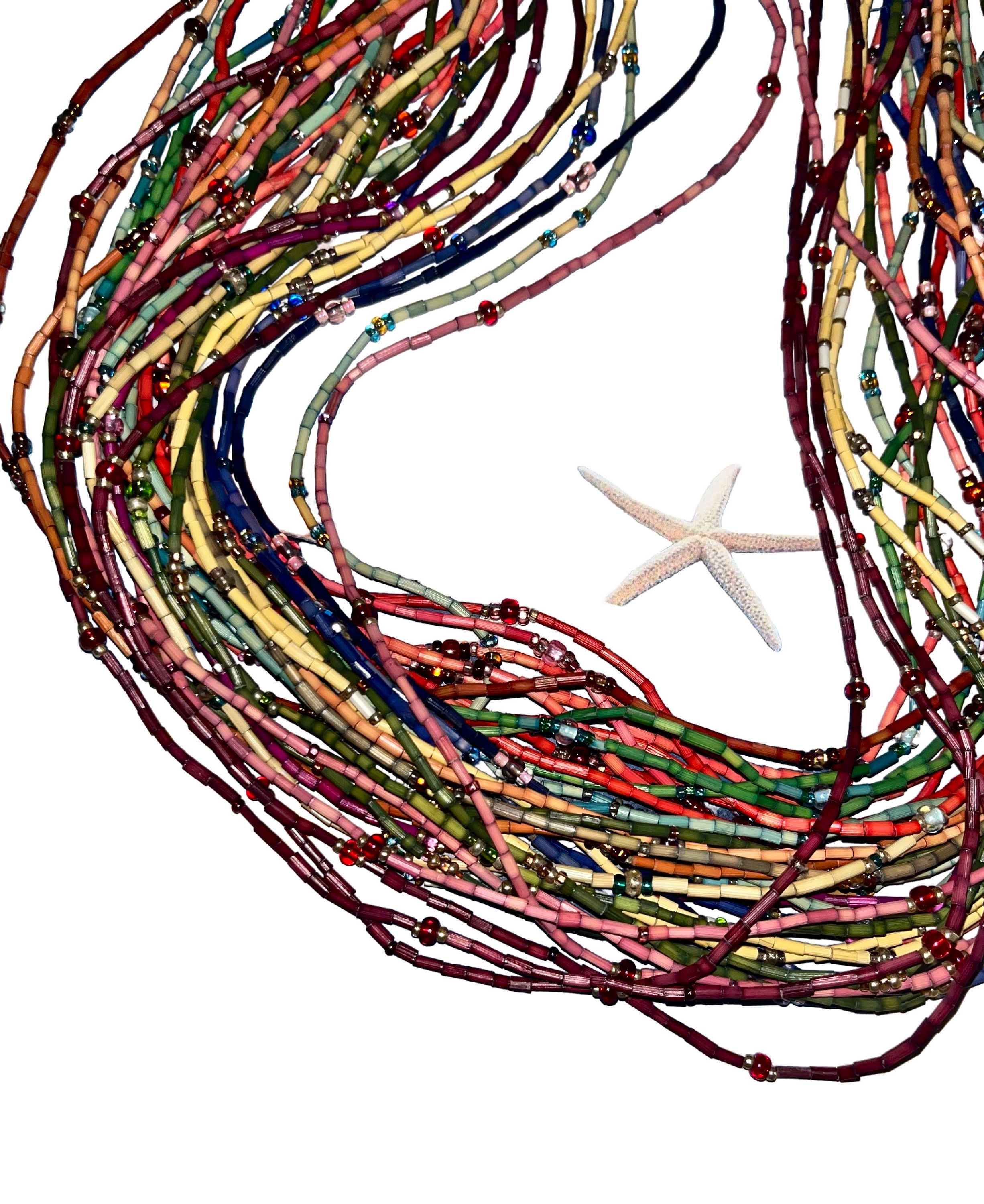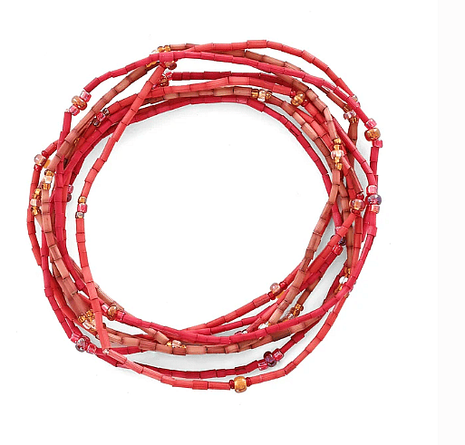Zulugrass 26" single strands are made from sustainable, natural grass beads. The richly hued grass is dyed with colorfast, low-impact dyes and interspersed with hand-blown Czech glass. Strung on elastic, it can be worn as a bracelet, necklace, anklet, hair tie and more. Zulugrass is as creative as the individual that buys it!