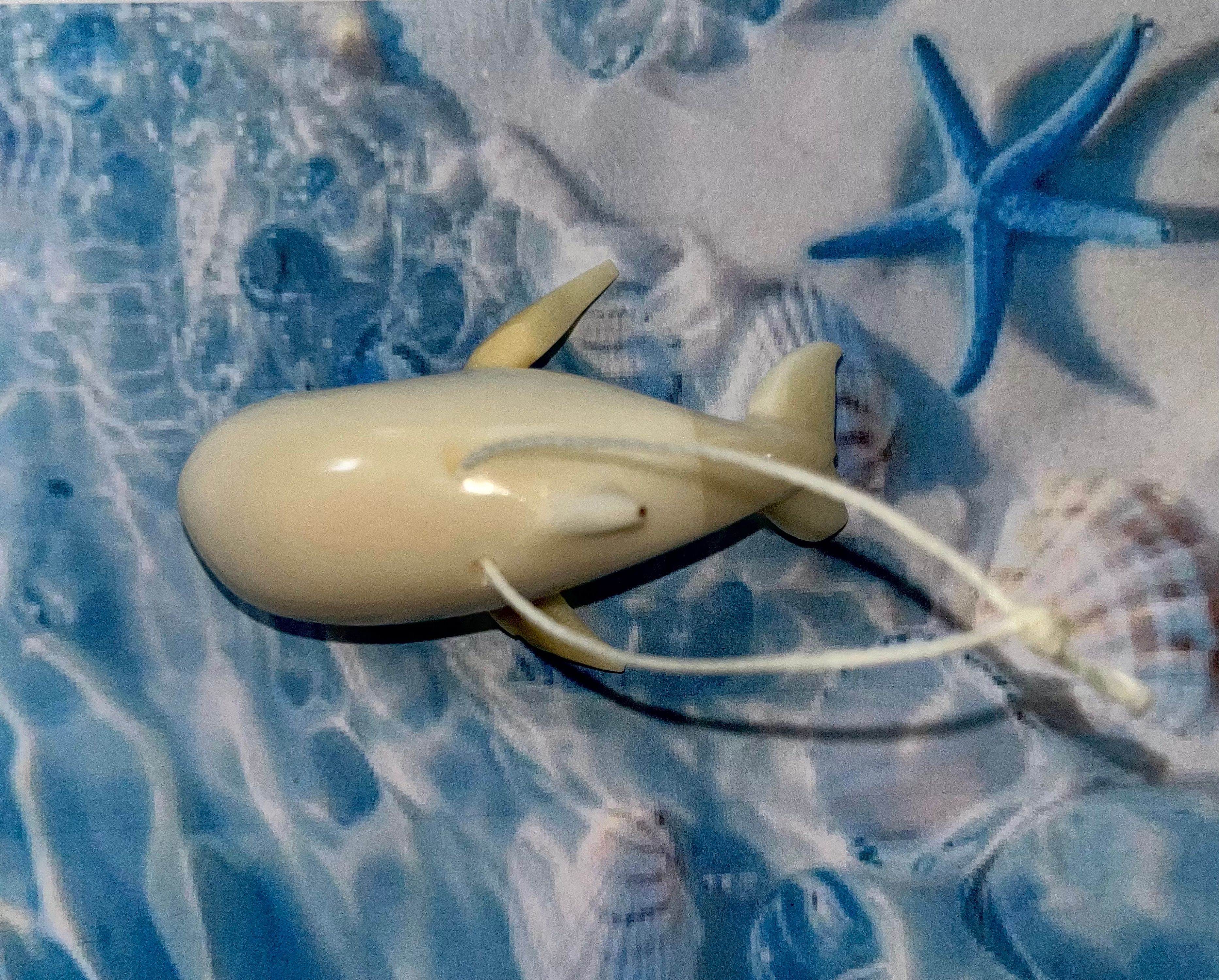 This Whale tagua ornament has been hand carved in Ecuador from tagua nuts, a renewable rain forest seed known as vegetable ivory for its likeness to real animal ivory, but with animal and habitat-friendly properties. All colors are achieved using natural techniques, such as boiling, fermentation, burning and inlay, that enhance but don't completely cover the nut's organic beauty. Similar to animal ivory, this figurine will gently antique or darken over time.