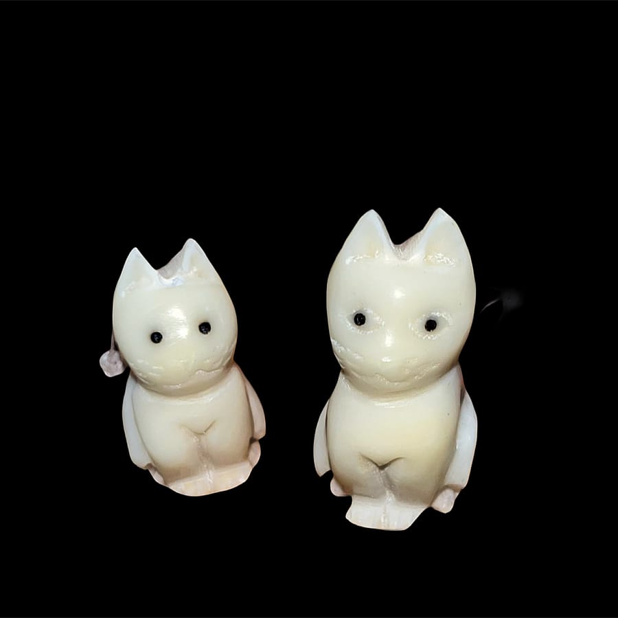 This Cat Kitten tagua ornament has been hand carved in Ecuador from tagua nuts, a renewable rain forest seed known as vegetable ivory for its likeness to real animal ivory, but with animal and habitat-friendly properties. All colors are achieved using natural techniques, such as boiling, fermentation, burning and inlay, that enhance but don't completely cover the nut's organic beauty. Similar to animal ivory, this figurine will gently antique or darken over time.