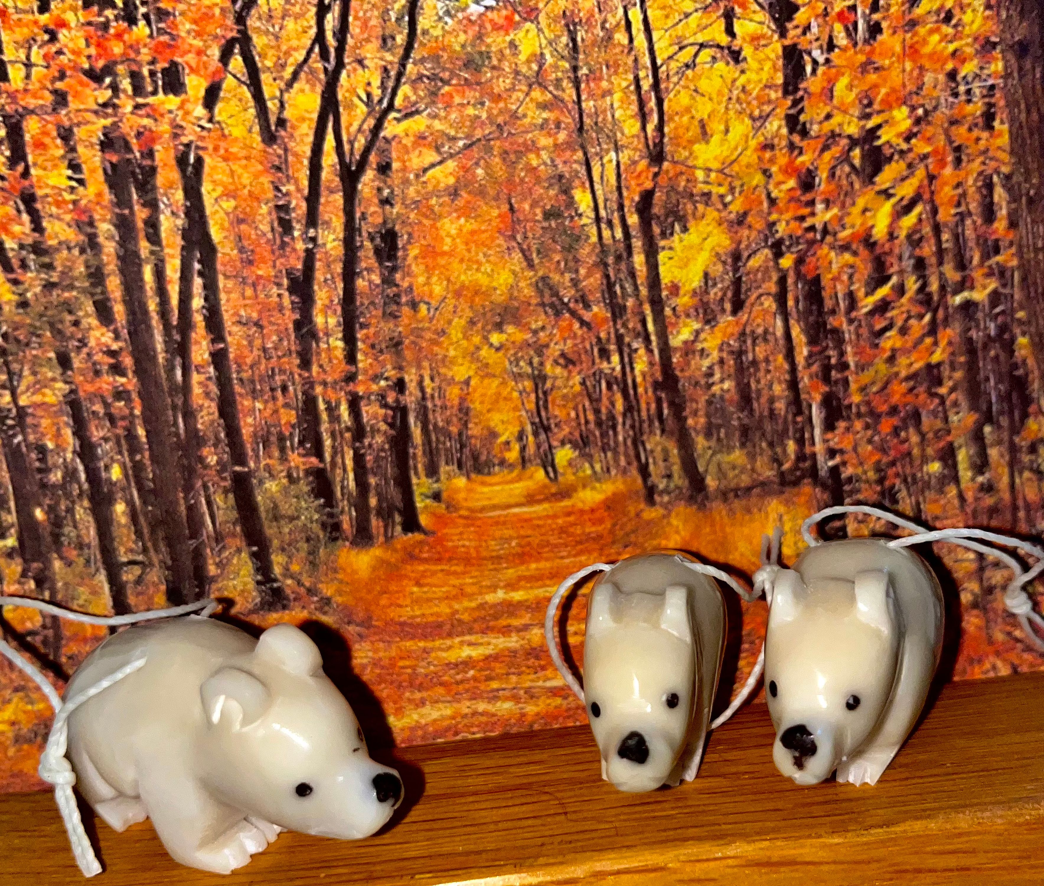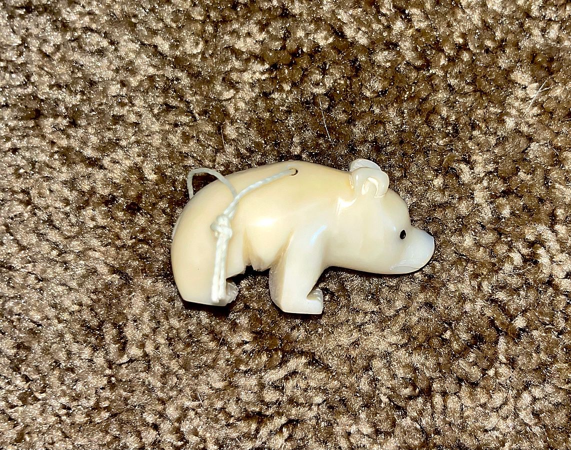 This Bear tagua ornament has been hand carved in Ecuador from tagua nuts, a renewable rain forest seed known as vegetable ivory for its likeness to real animal ivory, but with animal and habitat-friendly properties. All colors are achieved using natural techniques, such as boiling, fermentation, burning and inlay, that enhance but don't completely cover the nut's organic beauty. Similar to animal ivory, this figurine will gently antique or darken over time.