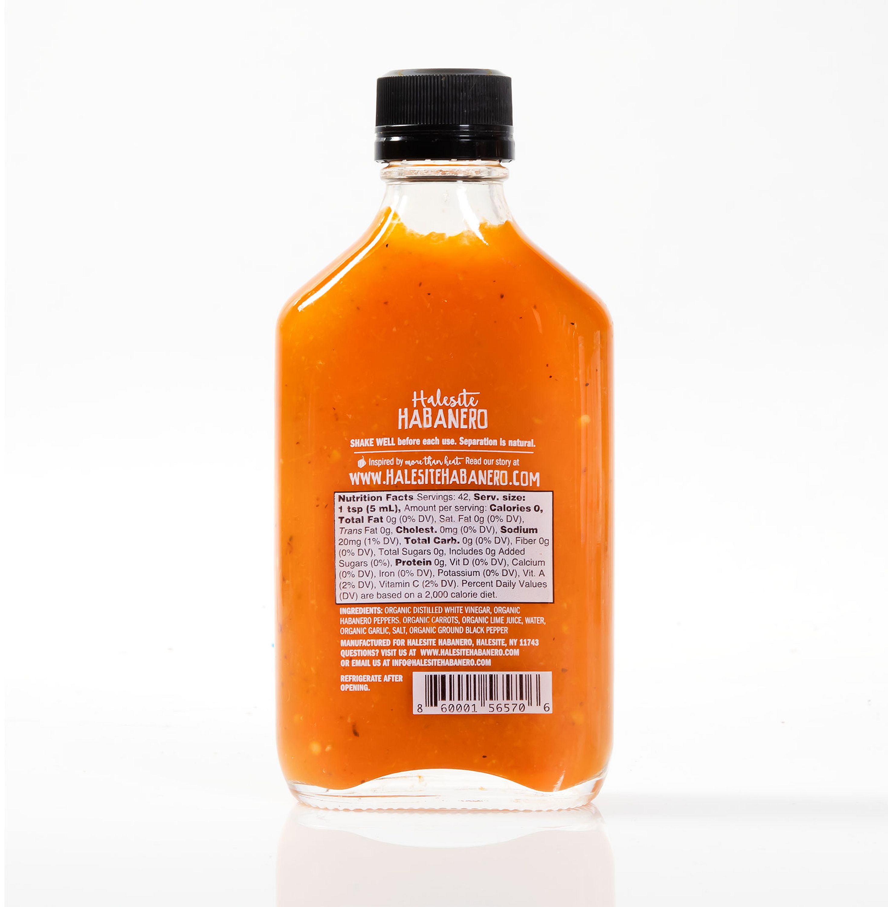 INGREDIENTS: Organic Distilled White Vinegar, Organic Orange Habanero Peppers*, Organic Carrots, Organic Not From Concentrate Lime Juice, Water, Organic Garlic*, Salt, Organic Ground Black Pepper
