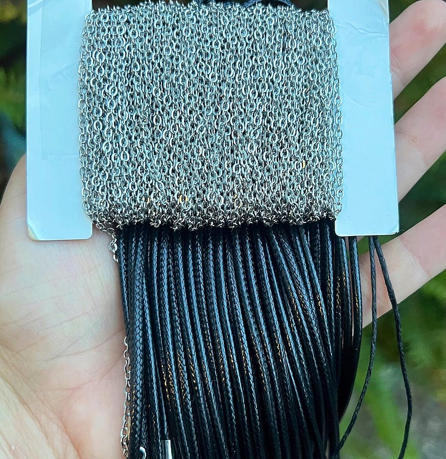 Pendant comes on a sturdy 18” necklace chain, made of high quality, tarnish free Stainless Steel OR a 18" black waxed cotton cord and closes with a silver lobster clasp. All metal is lead and nickel free!