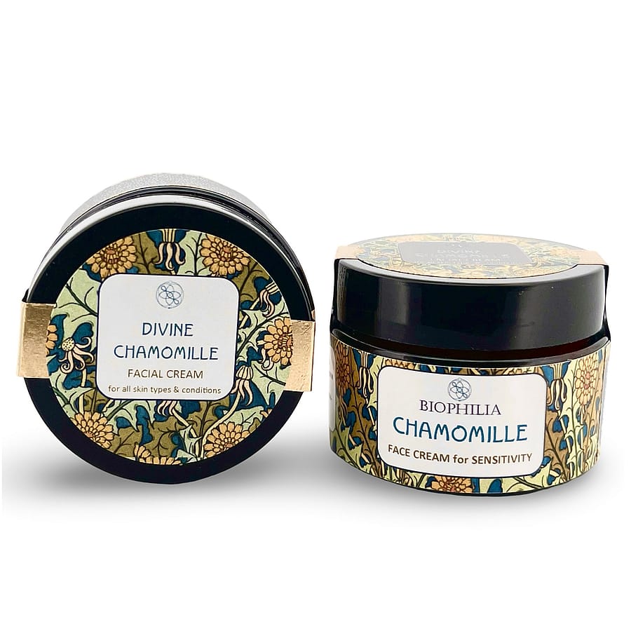 Our best selling Chamomile Face Cream is formulated with a triple extract of fresh chamomile flowers, collagen-boosting sulfur and raw Manuka honey. It restores suppleness and rehydrates all skin types.