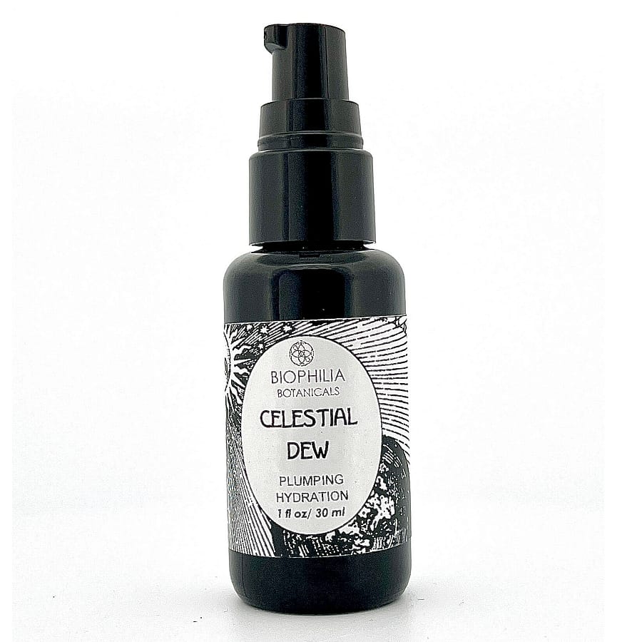 Celestial Dew Face Serum is particularly suited to all skin complexions from the most fragile and sensitive to the acne prone, scarred and inflamed. It is also a great summer serum for anyone looking to deeply hydrate the skin while enjoying the cooling kiss of our artisan cucumber water combined with our vitamin C and mineral rich parsley distillate.