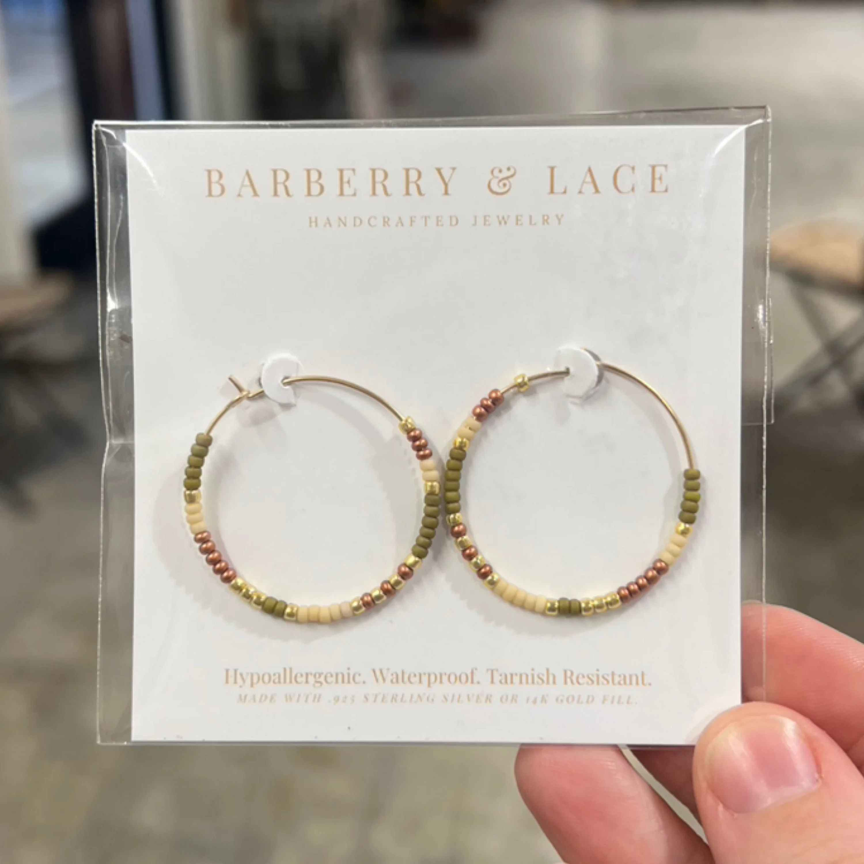 Green Beaded Hoops