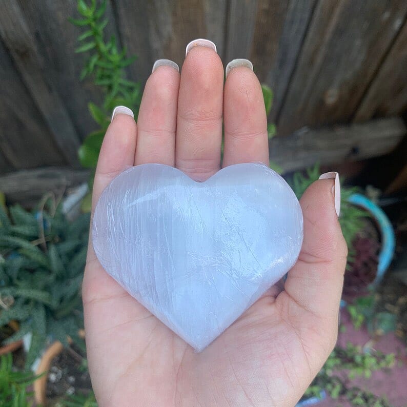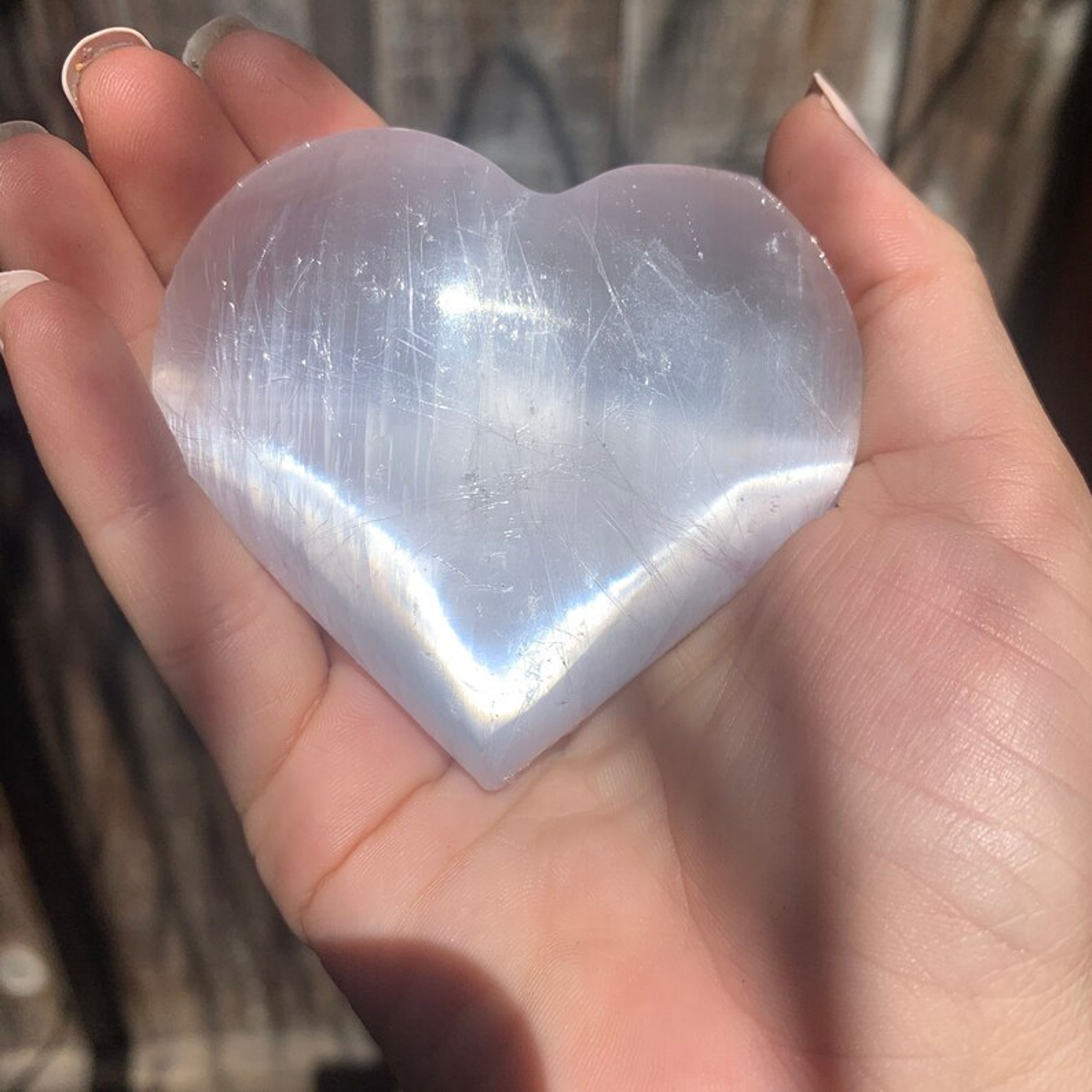 You will receive one Selenite Crystal Heart. Many people use selenite to cleanse and purify the environment and clear negative energy. Selenite is a great Self-cleaning stone and is also known to cleanse and charge other crystals as well.