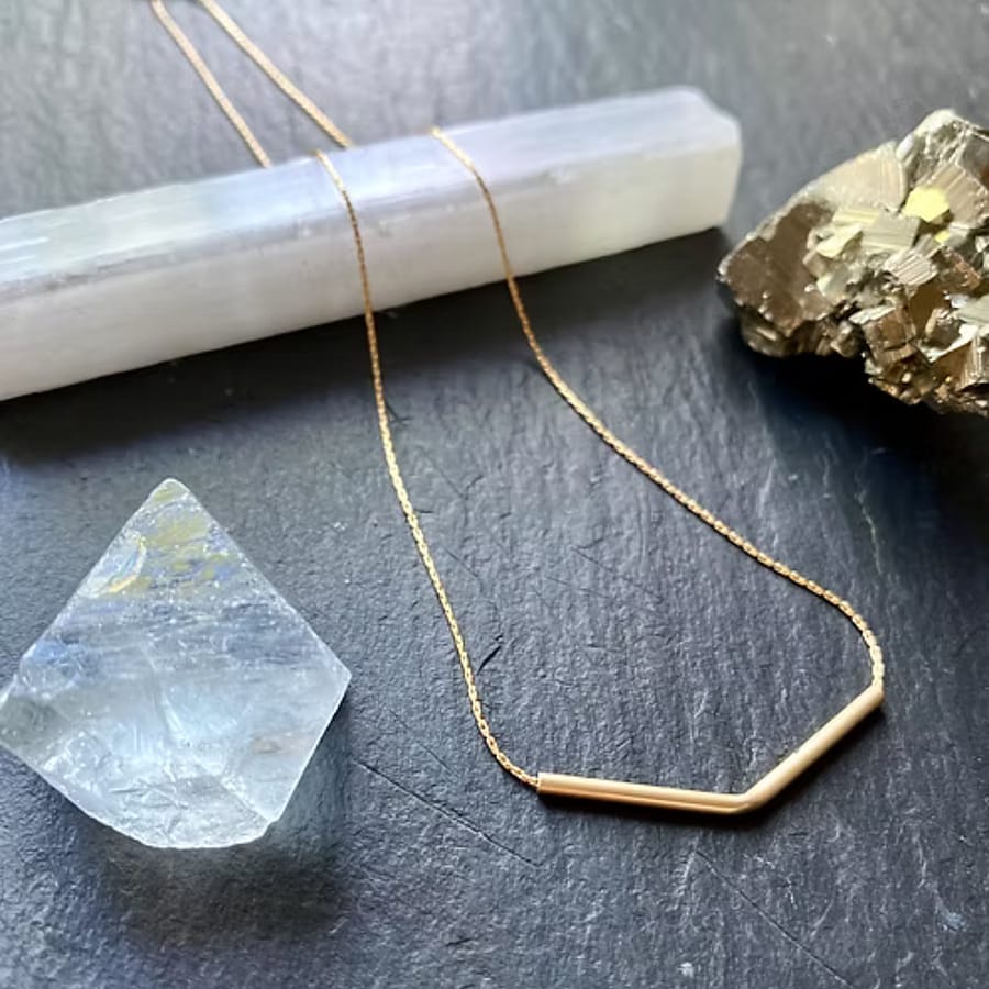 Understated elegance. This is the perfect necklace for everyday wear, whether you're dressing up a casual outfit or adding a touch of minimal glamour to a night out. The 16.5" gold filled snake chain drapes beautifully across the collarbones to rest at the perfect face-framing length.