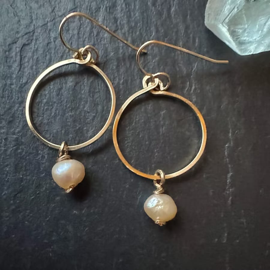 Pearl & 14kt gold hoop earrings