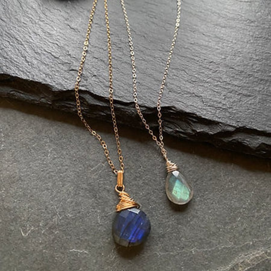 Available in 14kt gold filled or sterling silver, with a simple wrapped top and a classic 18" cable chain. Can be made shorter or longer upon request.