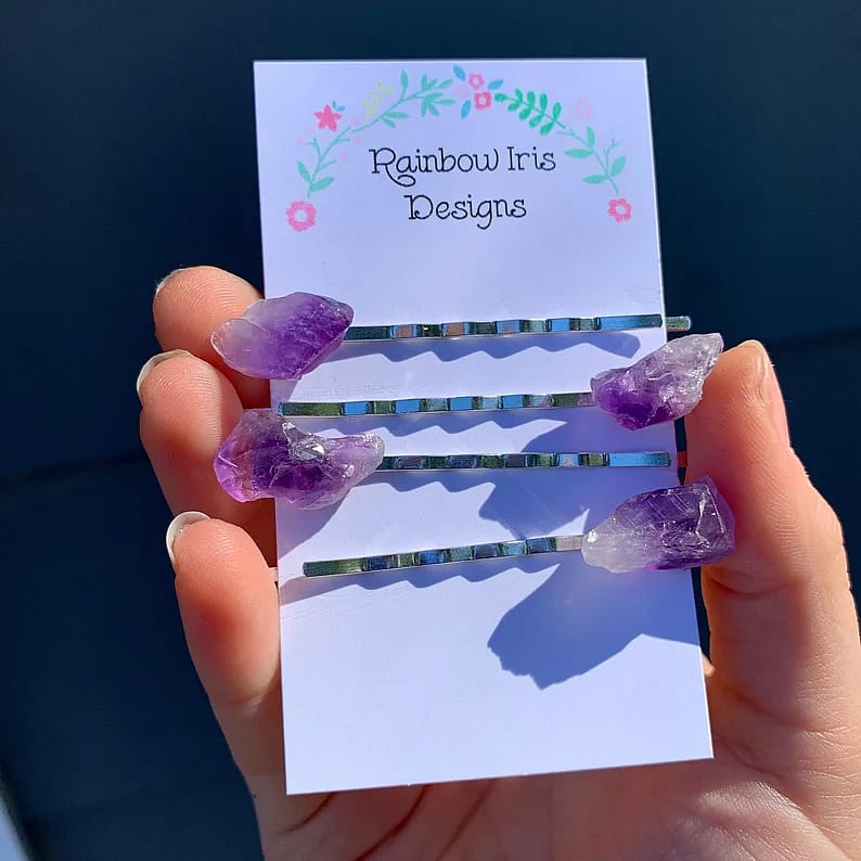 Raw Crystal Hair Pins - 2 or 4 Pack - 2 Pack / Amethyst