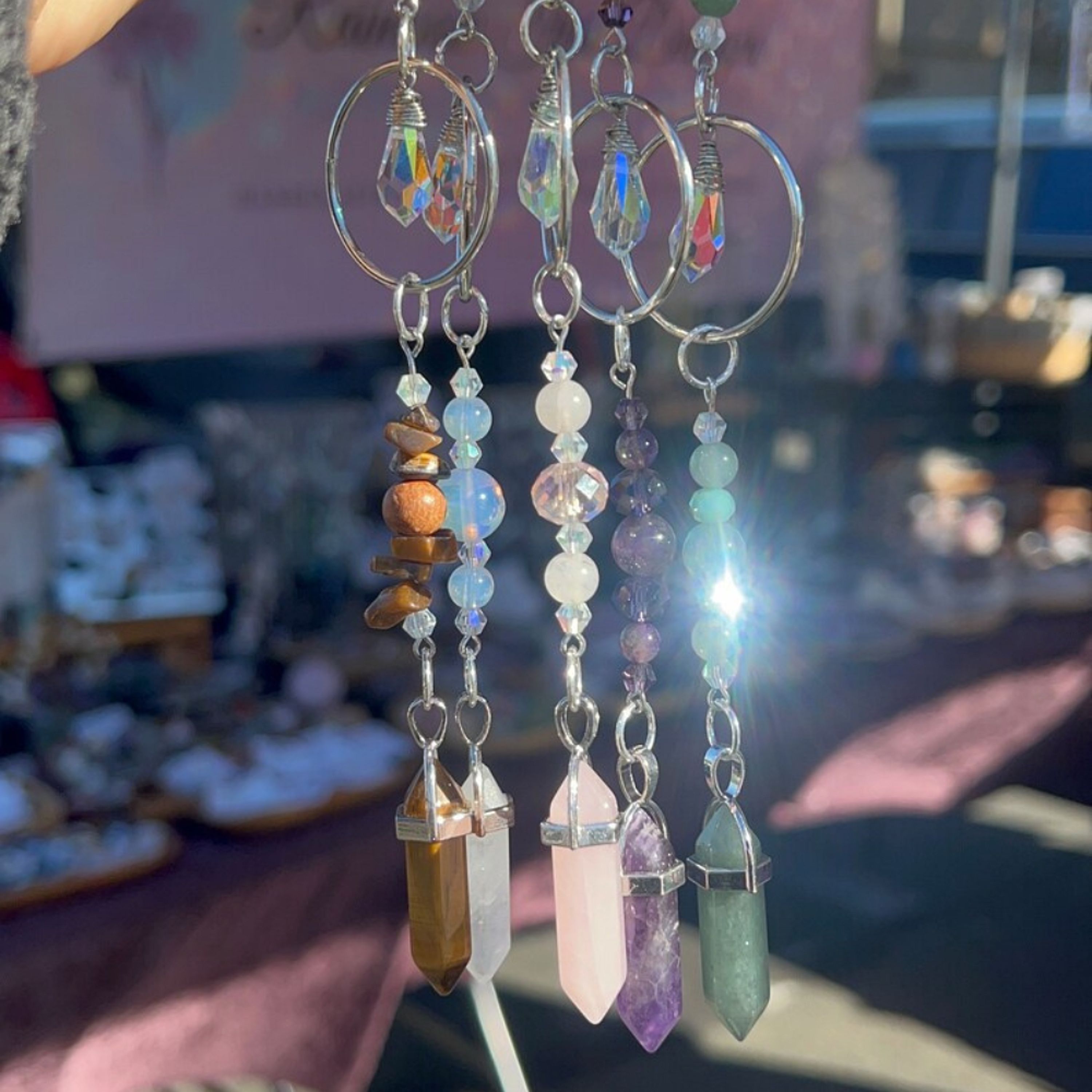 This handmade car charm will make the perfect addition to your car mirror! Comes with a free hook for easy hanging. Please choose what crystal you would like: Pink Rose Quartz Purple Amethyst Clear Quartz/Opalite Green Aventurine Golden Tigers Eye