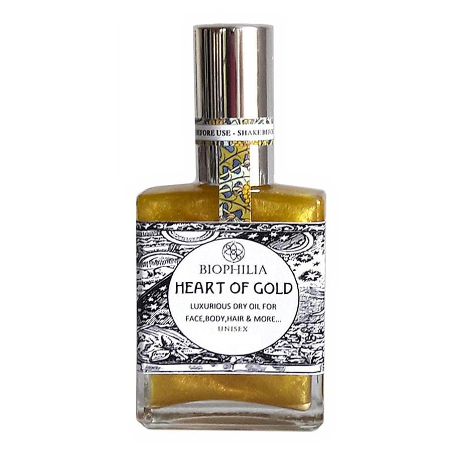 Heart of Gold creates a voluptuous connection to our bodies and opens the heart to safely and fully express who we really are. Its users describe it as “amazing, unusual, sensual, delicious, aphrodisiac and intimate”. A precious elixir to share with yourself and the ones you feel intimate with and close to. Heart of Gold is a unisex perfume oil that is equally loved by men and women and is an ideal gift for the ones you love. It can be used on the whole body as well as the face and hair. For a gentle golden shimmer, shake the bottle before use!