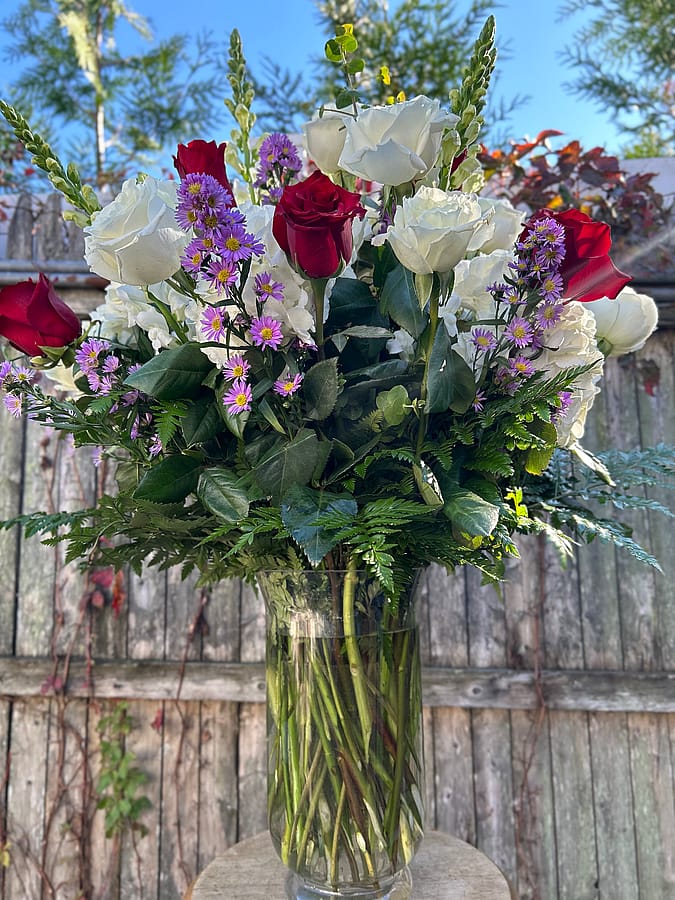 2 dozen of roses mix colors, Hydrangeas, Aster