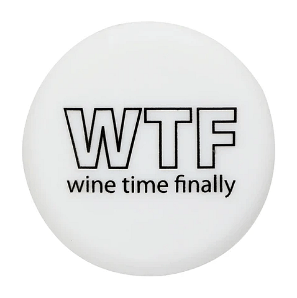 When the week’s been long and the bottle’s open—this cap says “WTF (Wine Time Finally)”, sealing in your pour and your attitude.