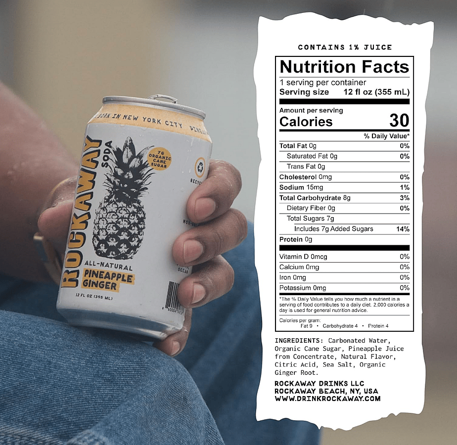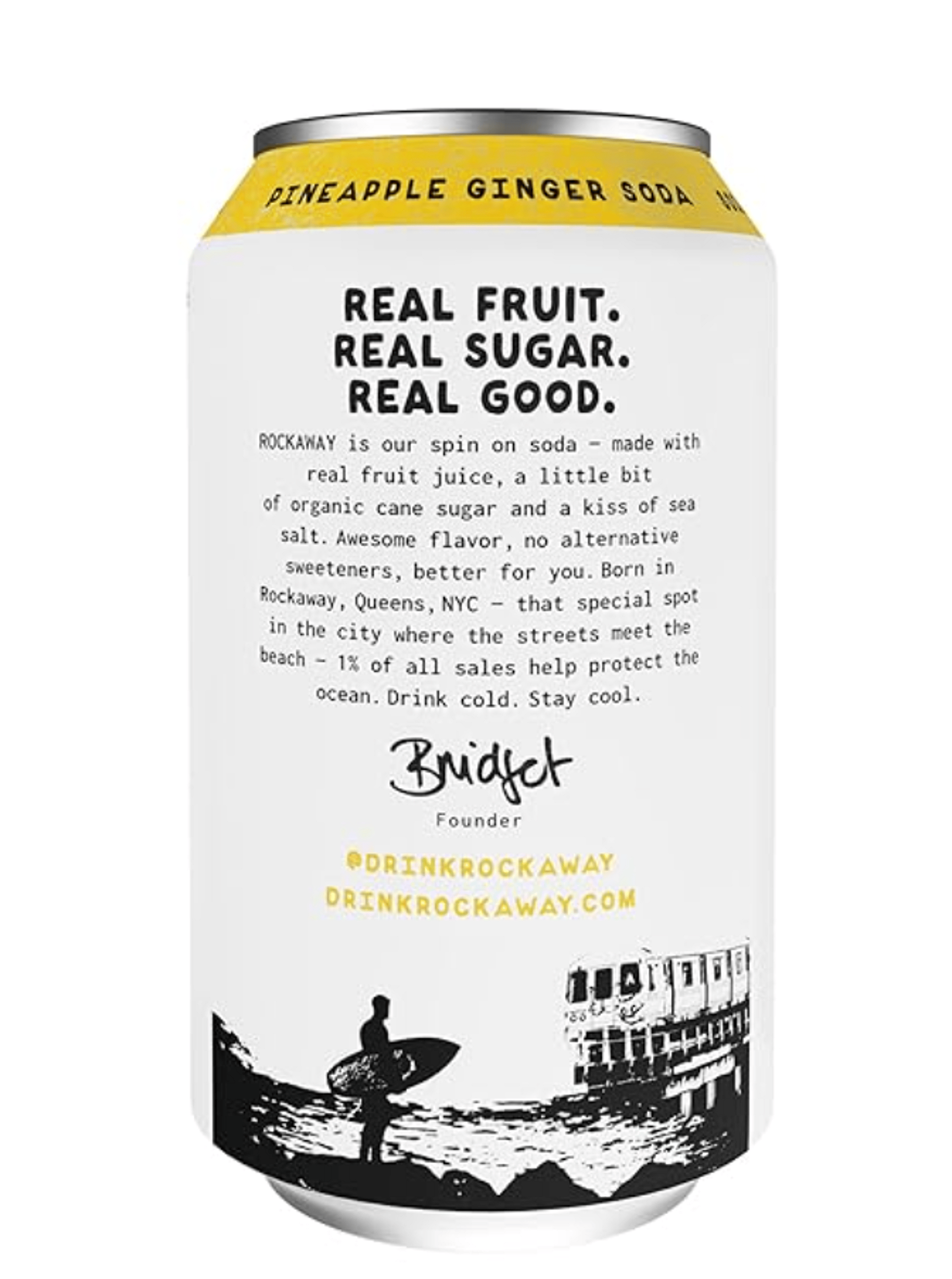 ALL NATURAL INGREDIENTS: Clean label. Real fruit juice, 7g Organic Cane Sugar, Sea Salt. Rockaway Pineapple-Ginger is enriched with natural ingredients, offering a satisfying, natural treat. Enjoy a low calorie, fruit flavored soda in every sip.