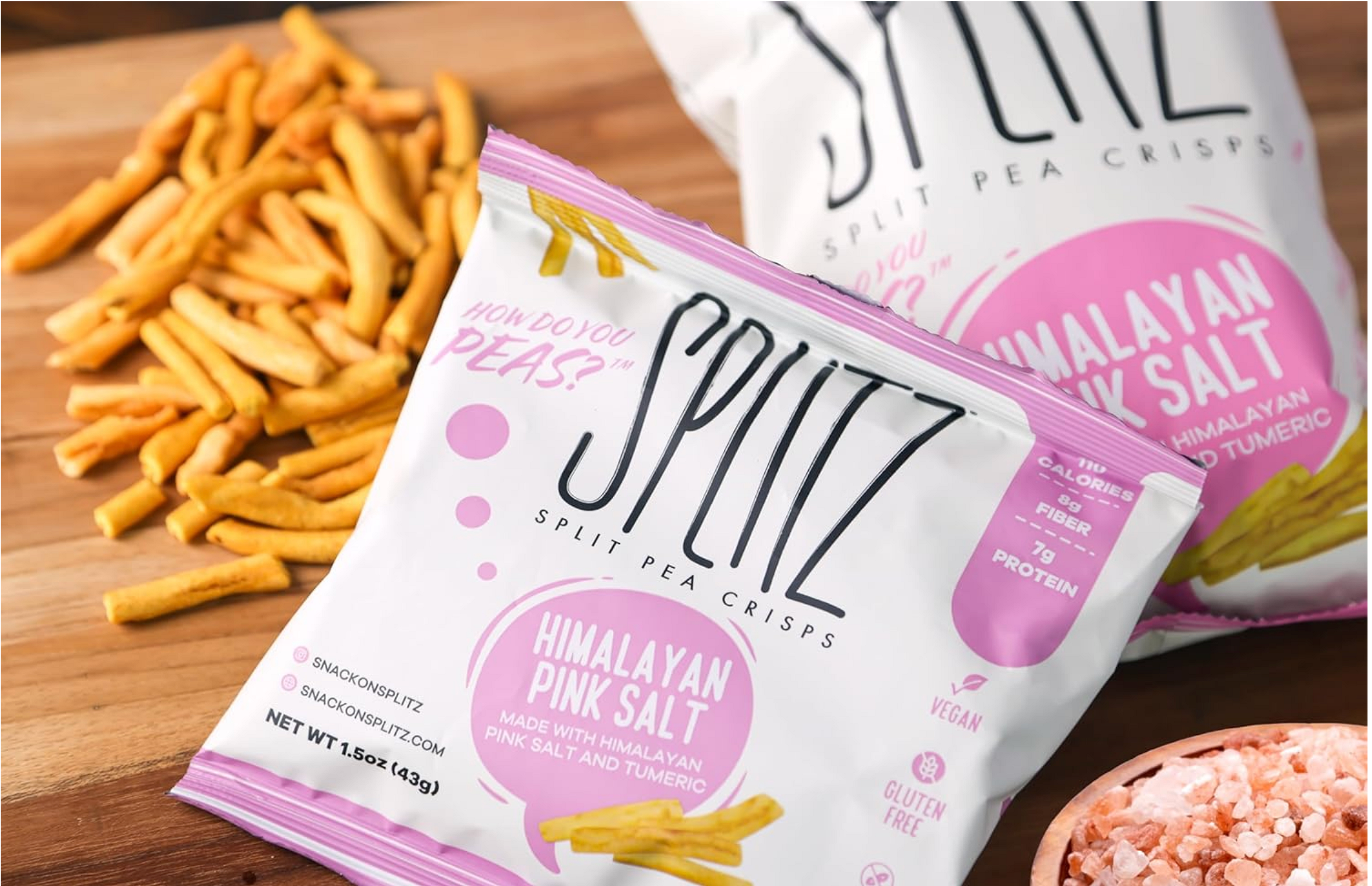 Crafted from 100% yellow split pea flour, Splitz Himalayan Sea Salt crisps are gluten-free, soy-free, dairy-free, and GMO-free, ensuring a wholesome snacking experience. Packed with 7g of fiber per 1.5 oz serving, they’re not just delicious but also support digestive health and keep hunger at bay.