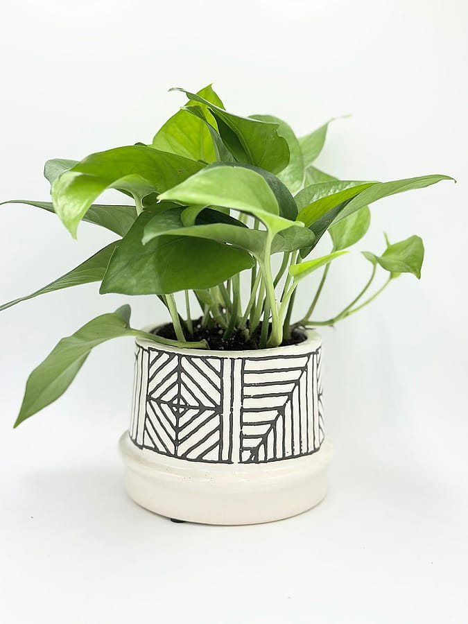 The Jade Pothos is a best seller, and for good reason. This lush plant is easy to care for and grows long vines quickly during its growing season (spring & summer). It has dark green, glossy leaves.