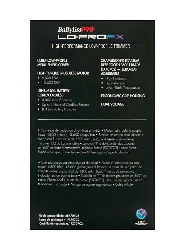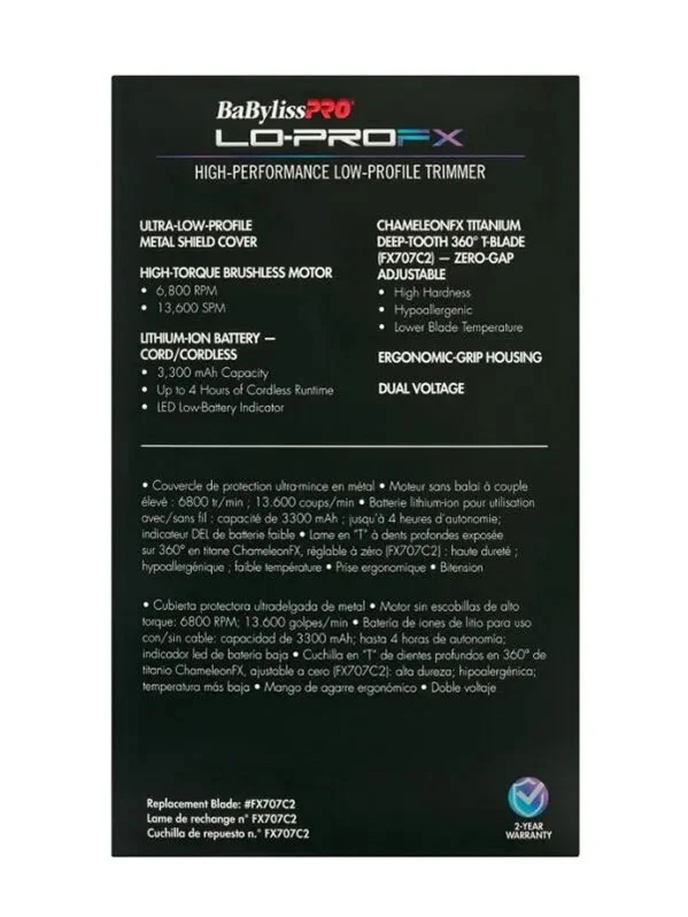 The LO-PROFX trimmers feature an Ultra-low profile metal shield cover and ergonomic grip housing. It's powered by a high-performance brushless 6,800 RPM motor with a high-capacity of 3,300 mAh - 4 hour run time. The design and power is completed by arming the LO-PROFX with a low-temperature blade. LO-PROFX, the perfect machine for overall feel, power, and cutting performance.