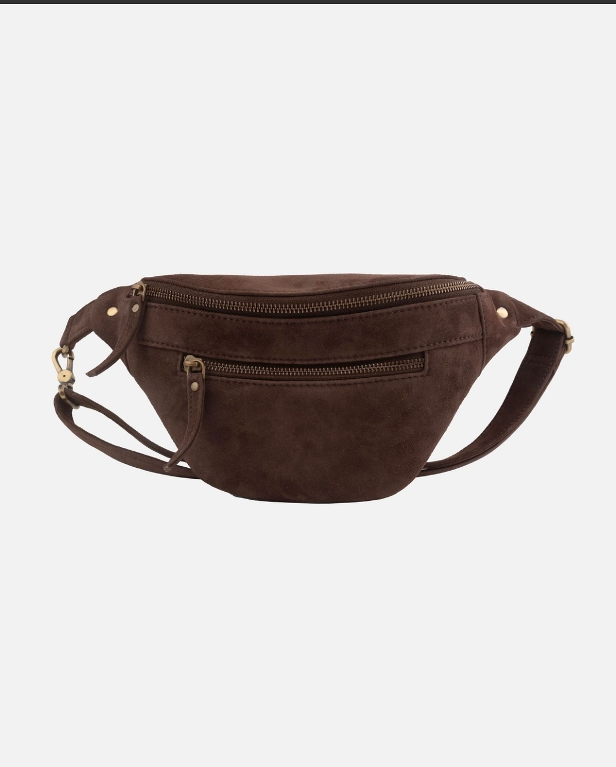 Stay stylish and hands-free with a suede belt bag. Created from premium suede this and belt bag features a sleek, compact design with multiple zippered compartments. Not your Grammy's Fanny Pack!