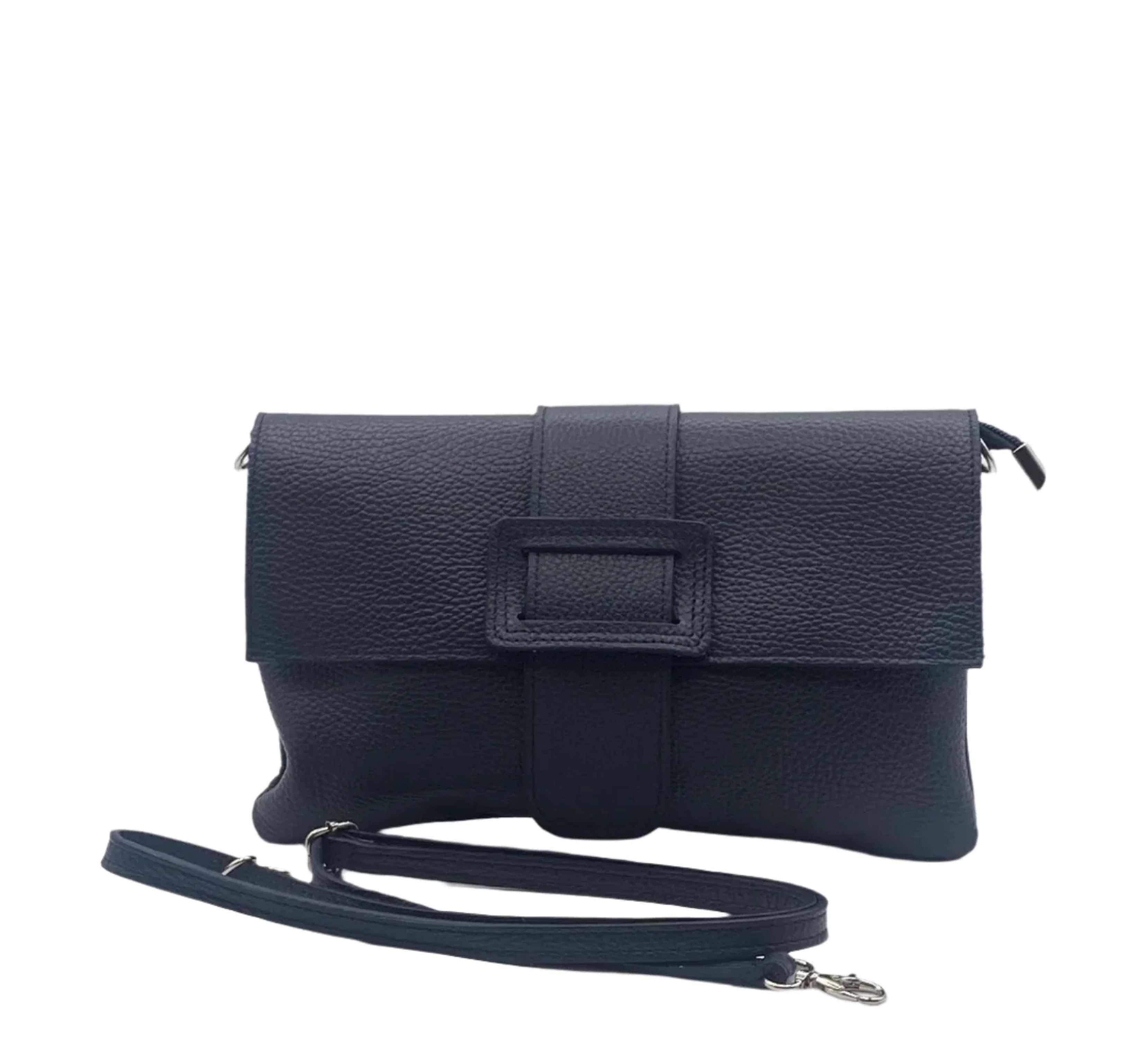 Introducing Diana, a timeless clutch crafted from genuine leather. Its spacious interior and inside zipper provide practicality while the elegant leather buckle adds a touch of sophistication. Perfect for any occasion, this piece is both luxurious and functional.