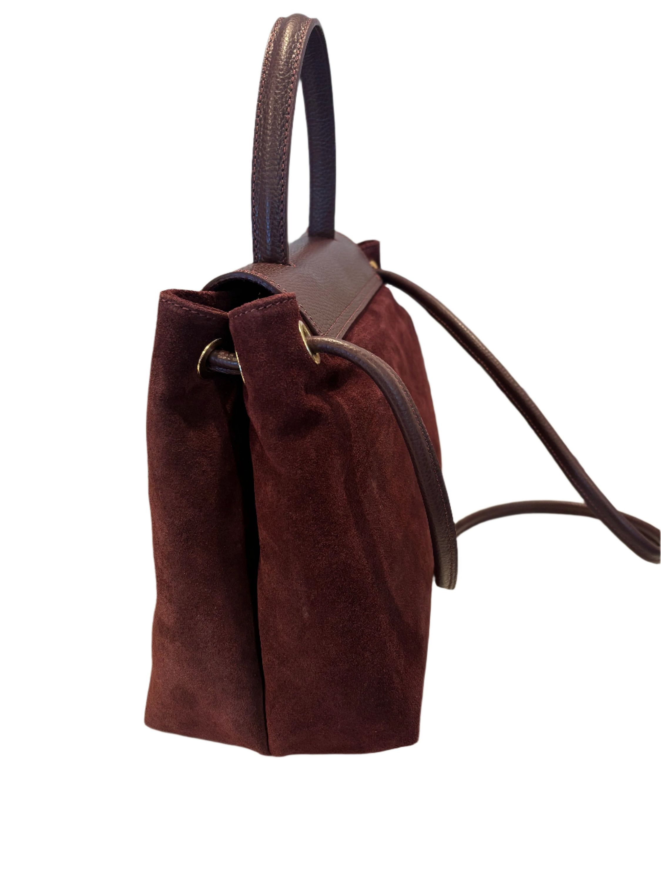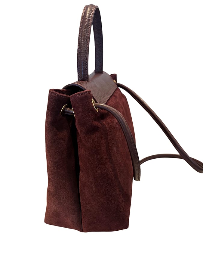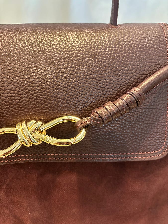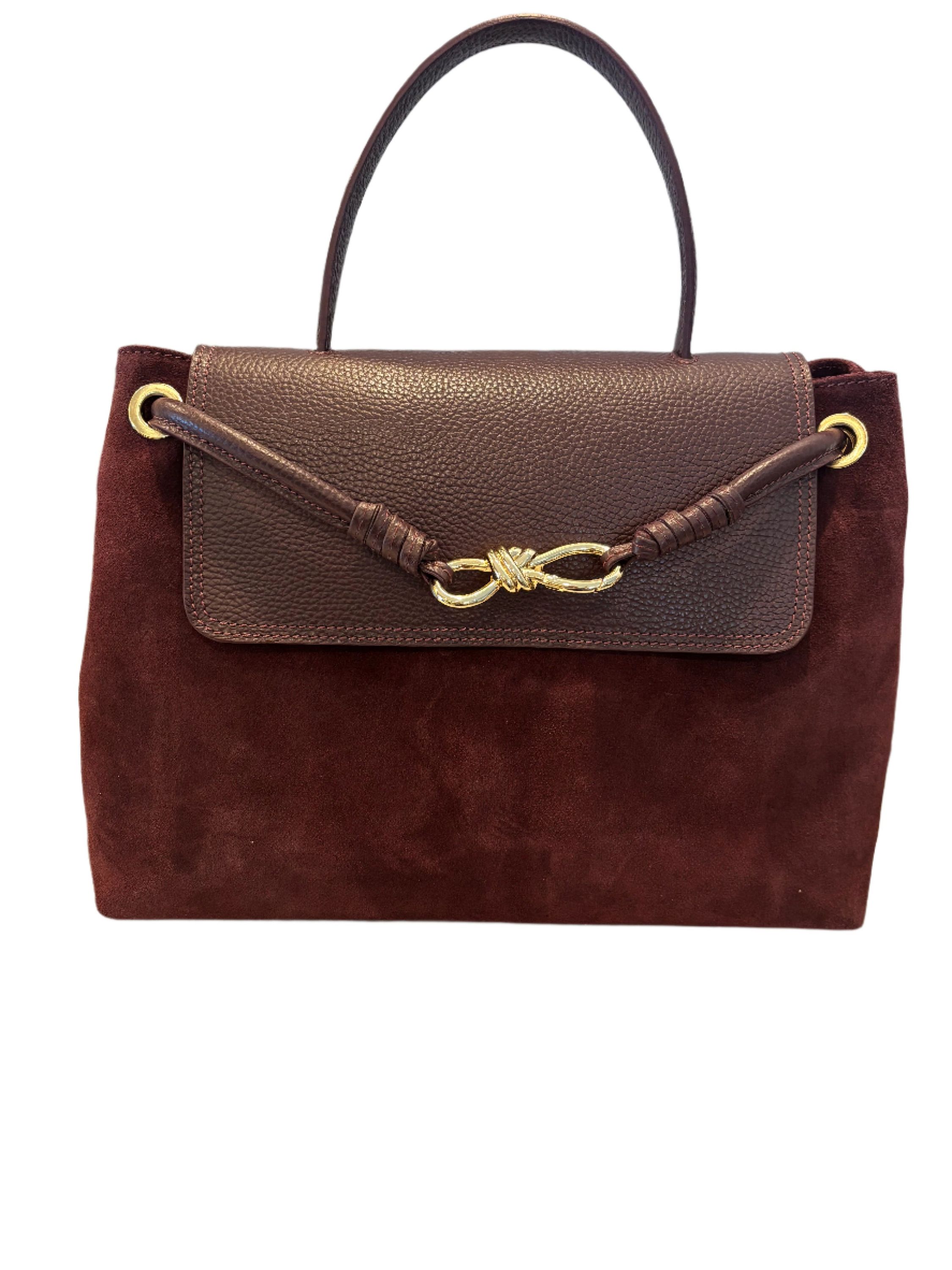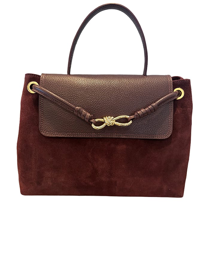 Elevate your style with the Jasmine handbag, crafted from luxurious suede and leather. Featuring a refined gold belted detail, this top-handle bag also includes a versatile shoulder strap for effortless carrying. Secure your essentials with both a snap closure and an inside zipper, combining elegance with practicality for the sophisticated woman on the go.