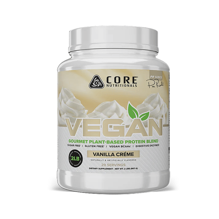 "Core VEGAN is designed to solve the common issues of plant-based proteins: poor taste and incomplete amino acid profiles. Using a blend of pea and brown rice proteins, it delivers a complete protein source, enhanced with fermented vegan BCAAs to support repair and recovery. To ensure optimal digestion and nutrient absorption, Core VEGAN includes DigeSEB™, a digestive enzyme blend that reduces bloating and discomfort often linked to vegan proteins. Beyond function, Core VEGAN excels in flavor and texture, rivaling animal-based proteins. The result is a smooth, creamy protein that makes hitting your goals easy and enjoyable. Core VEGAN offers the perfect balance of taste, digestibility, and performance, redefining what a plant-based protein can deliver.
