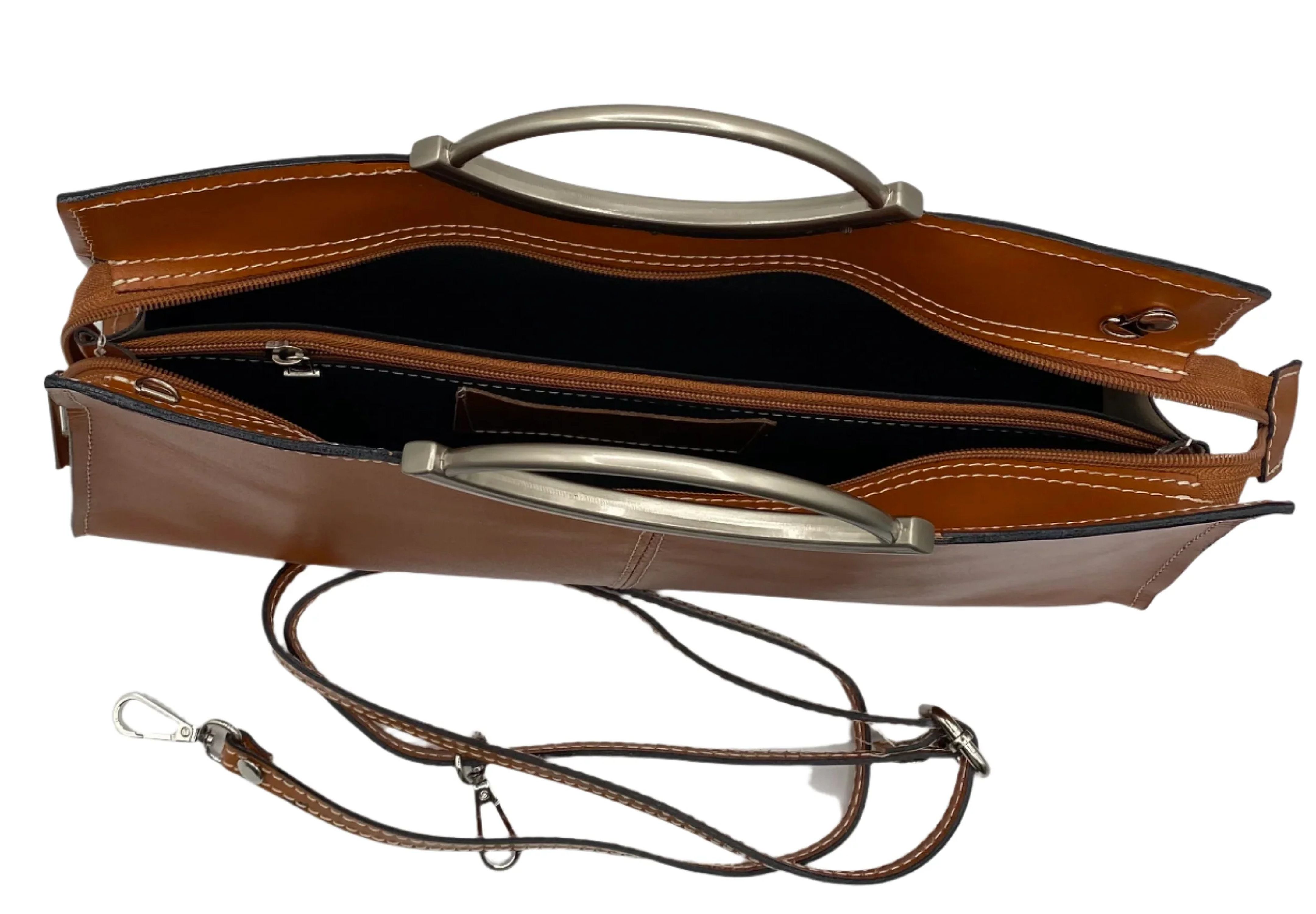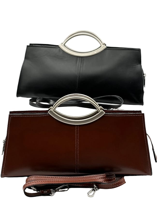 Mel's got you looking sleek with her genuine leather and metal hardware. From her round handles to her stylish shoulder strap, she's the perfect companion for any adventure. And don't forget about her middle zipper pocket – perfect for keeping all your essentials organized and within reach!
