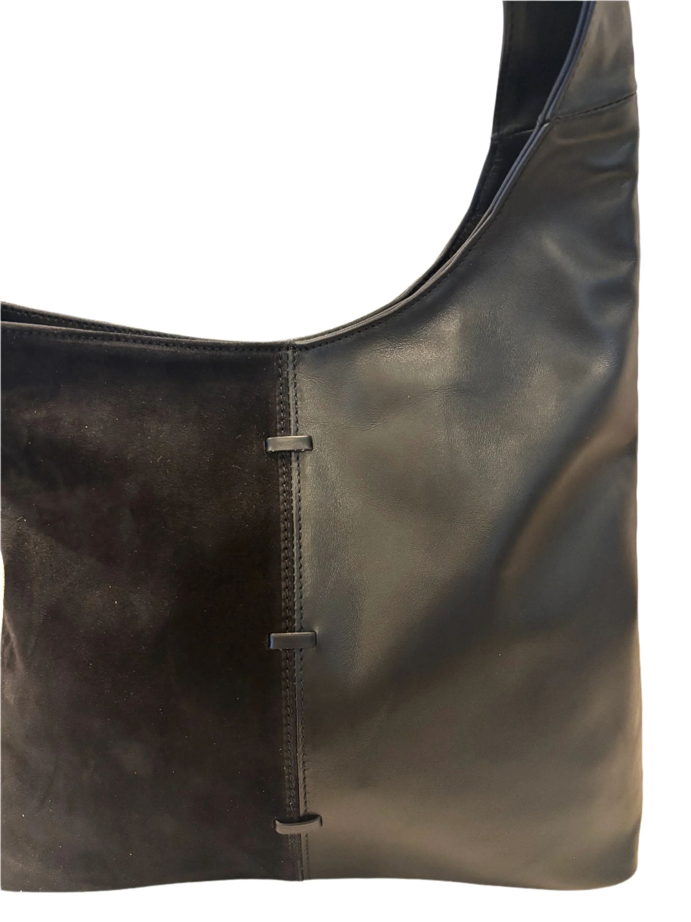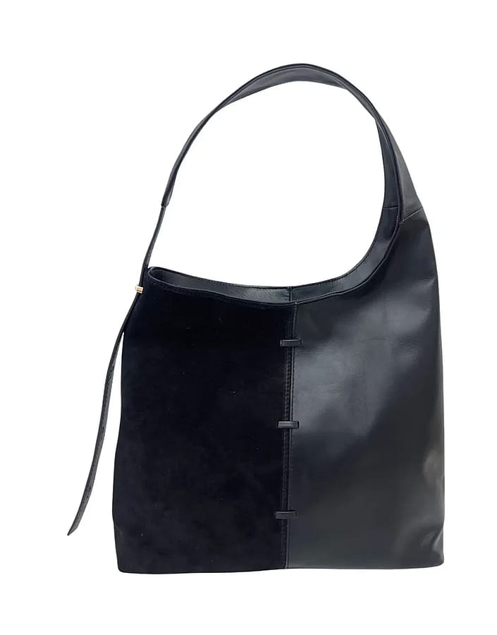 Indulge in the luxury of Zara - a versatile leather and suede bag with a playful adjustable shoulder strap. The modern design is complemented by a secure zipper closure and convenient inside zipper & side pockets. Elevate your style and organization with Zara.
