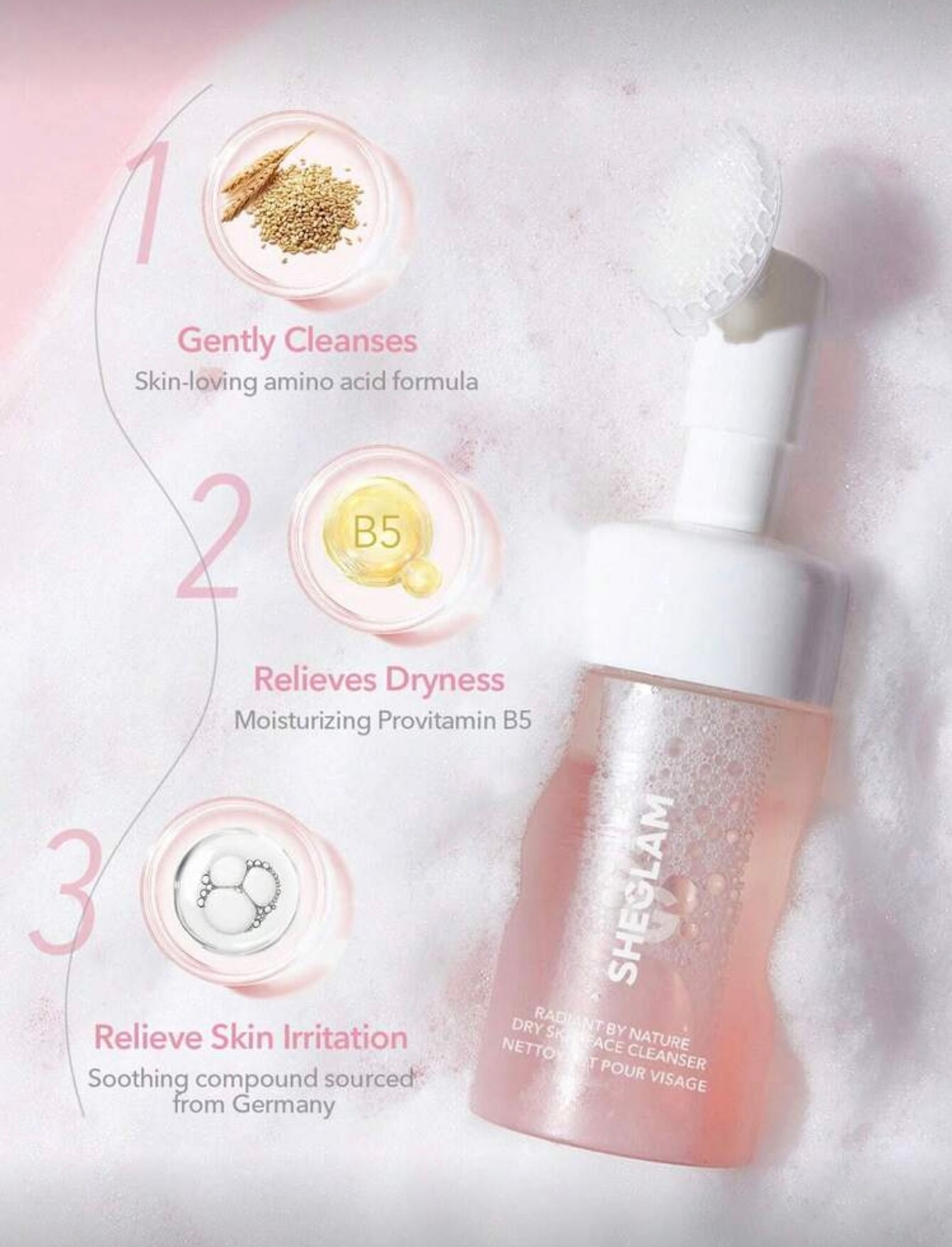 Sheglam Radiant by Nature Dry Skin Face Cleanser Hydrating Gentle Daily Facial Wash Liquid to Foam Formula NEW